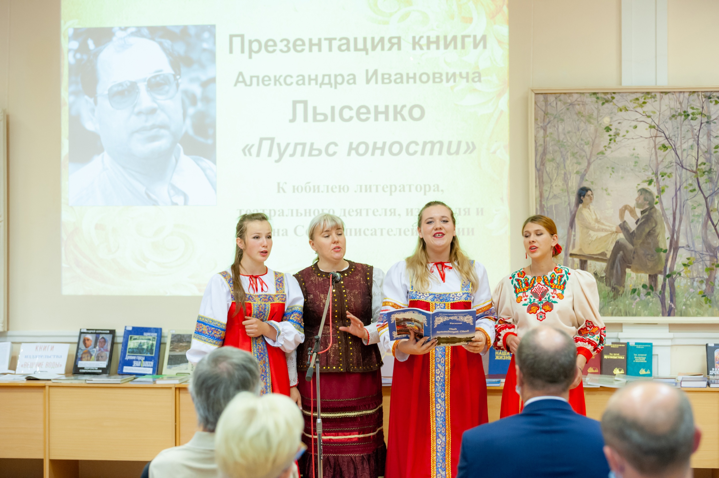 Встречу открыла любимая песня Александра Ивановича – «Есть только миг» композитора А. Зацепина и поэта Л. Дербенева. Она прозвучала в исполнении лауреата международных конкурсов Андрея Луничева. Затем Ю. В. Жукова – заместитель директора по библиотечной работе, представила юбиляра и рассказала о его издательской деятельности. Сотрудники отдела краеведения подготовили юбилейные выставки книг издательства «Вешние воды» и произведений А. И. Лысенко. О работе над книгой «Пульс юности» поведал ее редактор, член Союза писателей России, доктор филологических наук А. И. Кондратенко.