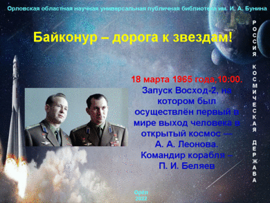 страниц истории нашей Родины – покорению космоса. Вместе с сотрудниками отдела