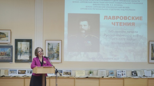«ЛАВРОВСКИЕ ЧТЕНИЯ» (12+) 16-17 ноября 2022 года в г. Орле прошла научно-практическая конференция «Лавровские чтения», посвященная 145-летию со дня начала Русско-турецкой войны 1877-1878 годов. Одной из главных площадок проведения мероприятия стала Орловская областная библиотека им. И. А. Бунина. Среди участников «Лавровских чтений» оказались профессиональные историки, реконструкторы, представители педагогического и библиотечного сообщества. В частности, свои исследования представили известные орловские краеведы – доктор филологических наук, председатель правления Орловского областного отделения Российского общества историков-архивистов Алексей Иванович Кондратенко и доктор исторических наук, замначальника Управления научной работы Среднерусского института управления–филиала РАНХиГС Александр Юрьевич Саран. Свои выступления они посвятили генералитету Российской армии и его связи с Орловским краем, а также орловским краеведам – офицерам Русской императорской армии. Еще одной краеведческой темы коснулась главный специалист Государственного архива Орловской области Ирина Анатольевна Сосновская. Она рассказала гостям конференции о деятельности орловского отделения Красного креста в период Русско-турецкой войны 1877-1878 годов. По видеоконференцсвязи в конференции участвовали старший научный сотрудник Государственного музея истории религий Владимир Александрович Безродин (Санкт-Петербург), профессор, доктор наук из Румынии Николае Юга и студентка Самарского национального исследовательского университета имени академика С. П. Королева Анастасия Сапрыкина. Поддержали мероприятие и представители Орловского Института развития образования, Духовно-патриотического центра «Вятский посад». Одним из самых ярких моментов конференции стало интерактивное выступление председателя Орловского регионального отделения ООД РОСРЕКОН, сотрудника Российского института археологии РАН Сергея Юрьевича Доронина, наглядно продемонстрировавшего, как выглядели униформа и снаряжение русской армии периода 1877-1878 годов. Также внимание зрителей привлекло выступление московского исследователя Николая Николаевича Литвинова, рассказавшем о изучении униформы на примере различных воинских подразделений. Стоит отметить, что особое внимание на конференции было уделено орловцу, герою Русско-турецкой войны генералу Василию Николаевичу Лаврову и его семье, мыслителю Николаю Яковлевичу Данилевскому и его книге «Россия и Европа», а также теме появления военной журналистики в период военных действий 1877-1878 годов и вопросам изучения событий XIX века в школьном курсе истории. 17 ноября «Лавровские чтения« продолжились в Орловском Военно-историческом музее, где участникам конференции провели экскурсию и познакомили с экспозицией. По итогам конференции планируется подготовить электронный сборник статей, который будет размещен в открытом доступе на сайте «Бунинки». Видеозапись конференции уже доступна в группе библиотеке в ВКонтакте по ссылке.