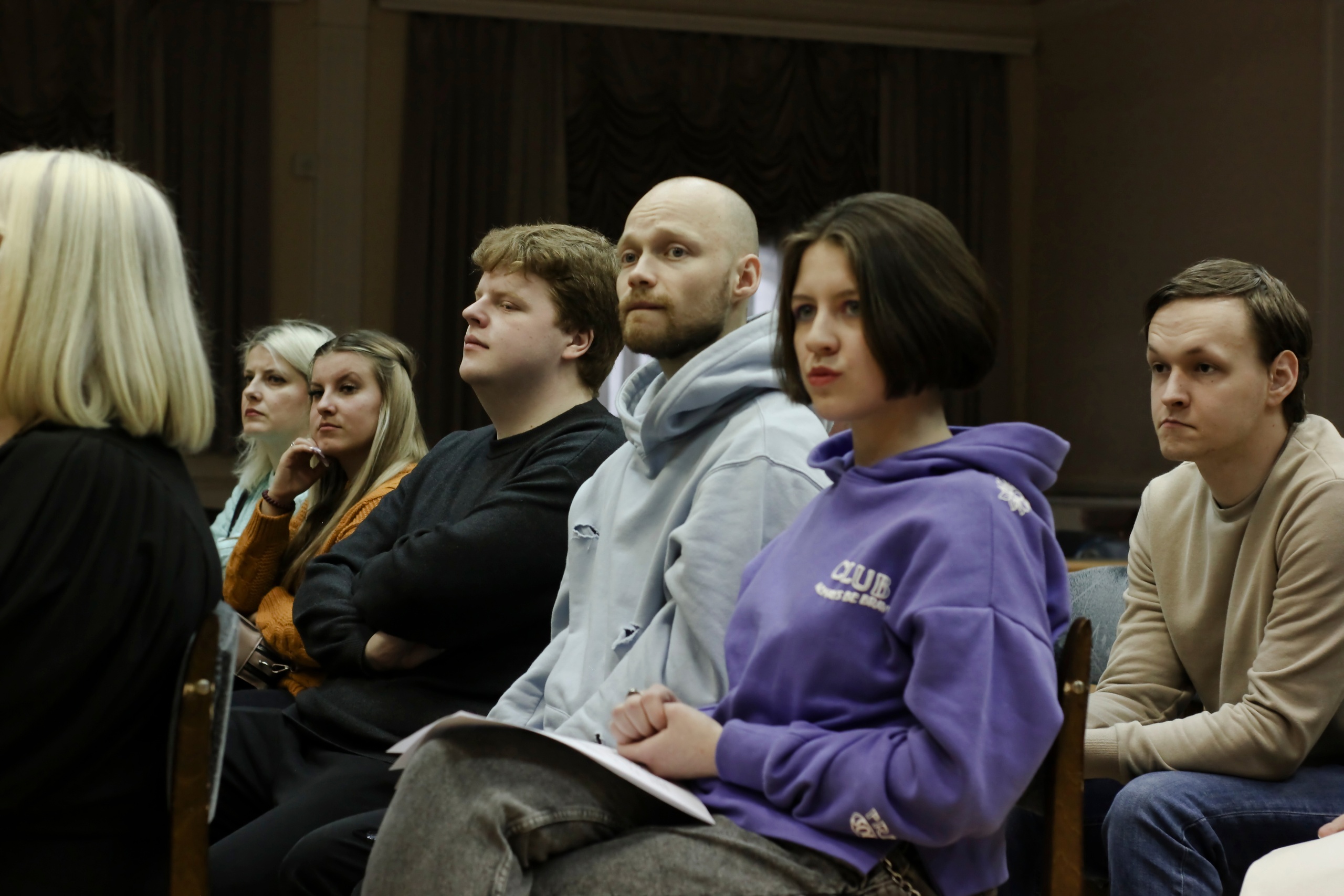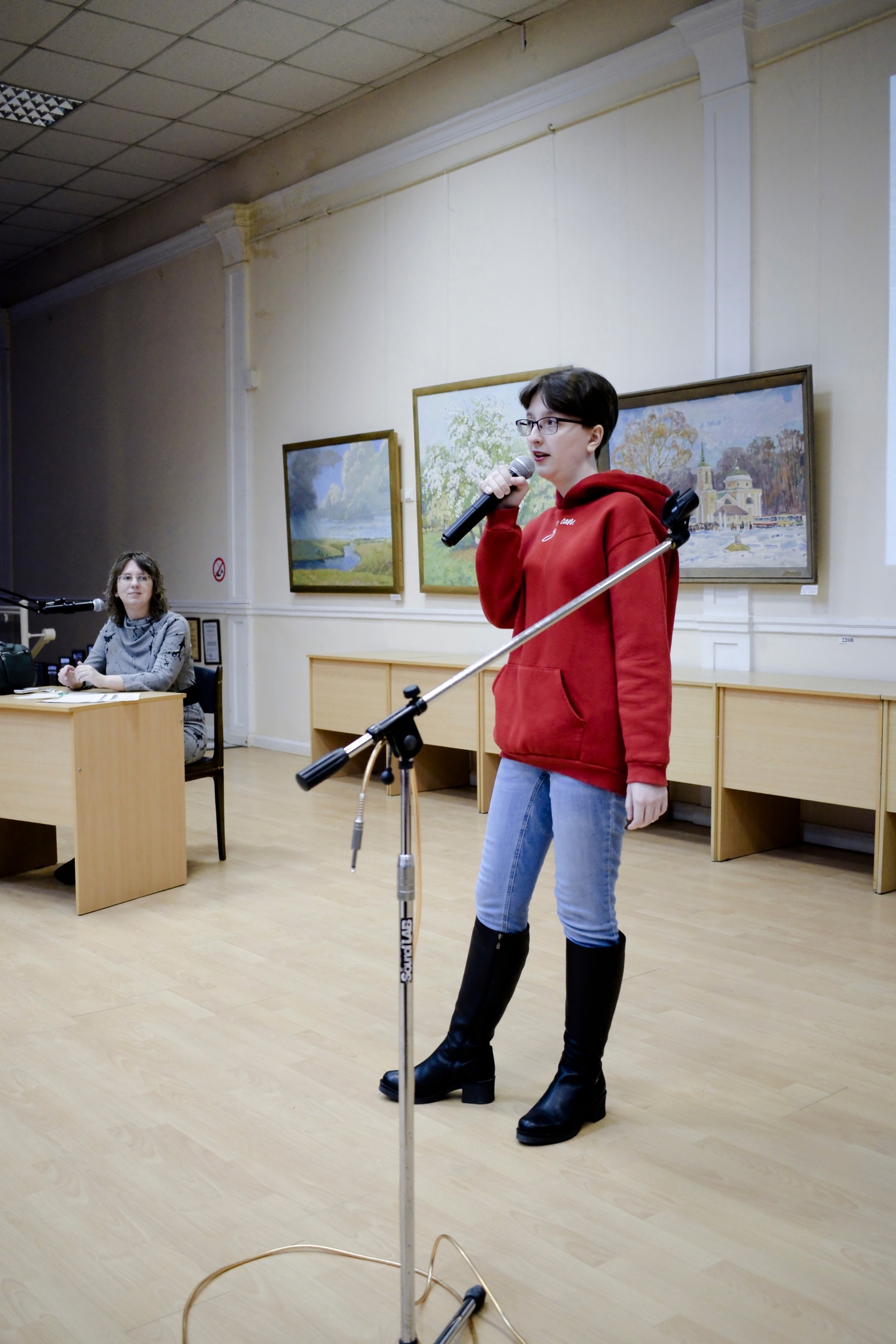В литературно-поэтическом клубе Шаг навстречу пополнение - выступает А. Круцких Как обычно, сначала были представлены познавательные мастер-классы от руководителей клуба. А. Попова описала 8 способов разнообразить основную часть художественного произведения. Т. Елесина рассказала членам клуба об истории структурирования текста, о типологии сюжетов, о формах повествования. Оба мастер-класса сопровождались многочисленными примерами из художественных произведений и кинофильмов.