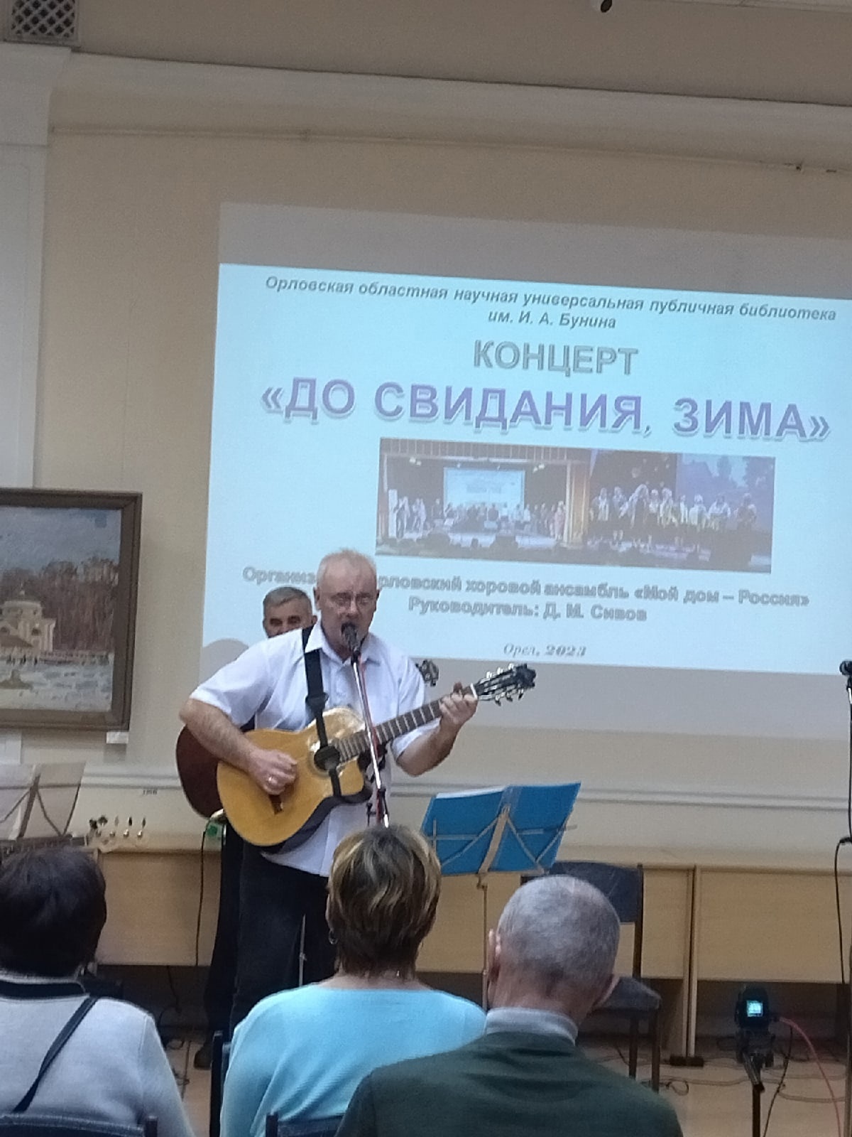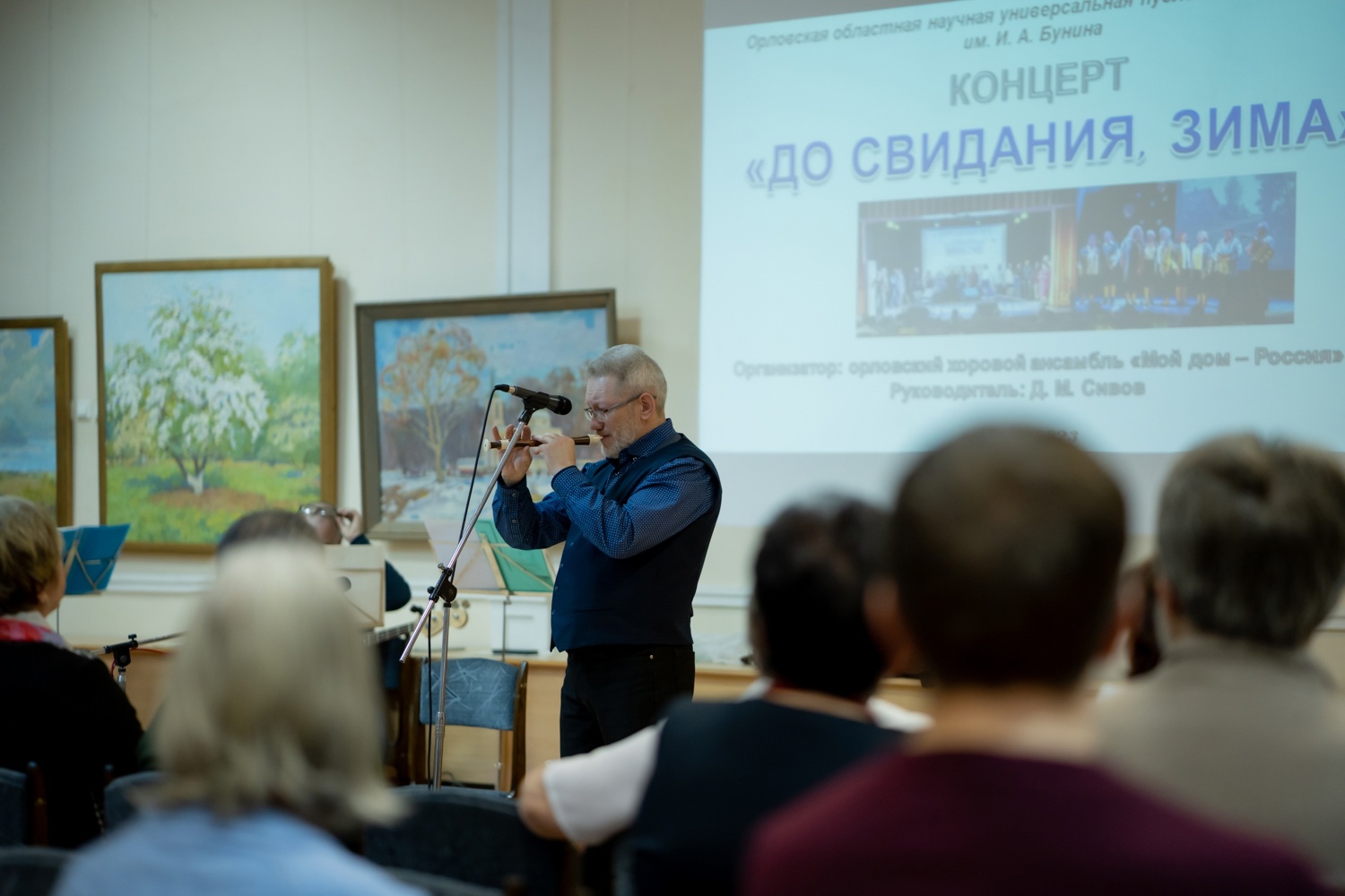 Концерт «До свидания, зима» (12+) 26 февраля 2023 года в универсальном читальном зале Орловской областной библиотеки им. И. А. Бунина прошел концерт хорового ансамбля «Мой дом – Россия» под названием – «До свидания, зима»
