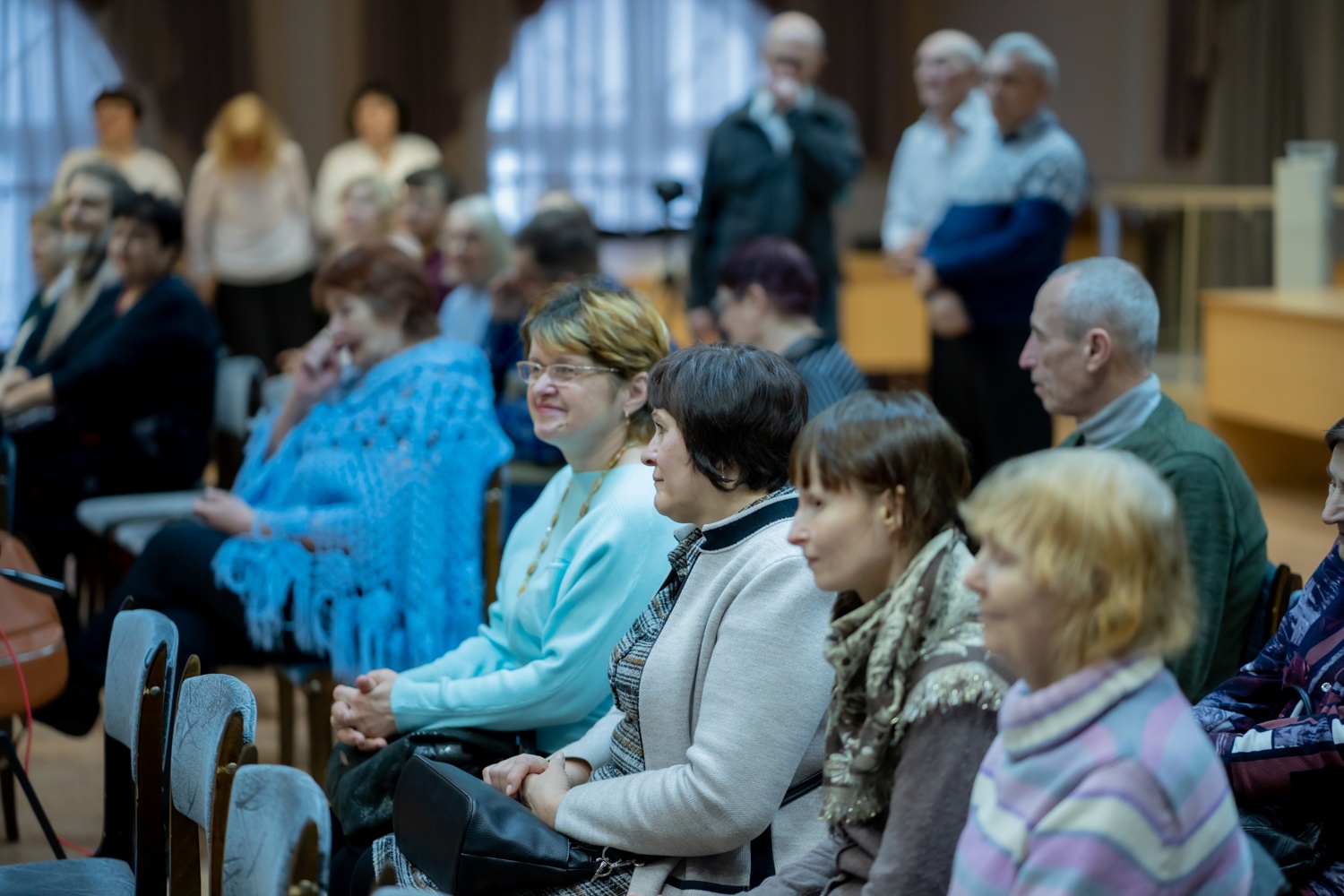 Артисты и зал Открыл мероприятие его организатор, руководитель ансамбля, человек-оркестр – Дмитрий Михайлович Сивов. Он сыграл на флейте прекрасную композицию «Одинокий пастух», задав лирический и эмоциональный настрой в зале.
