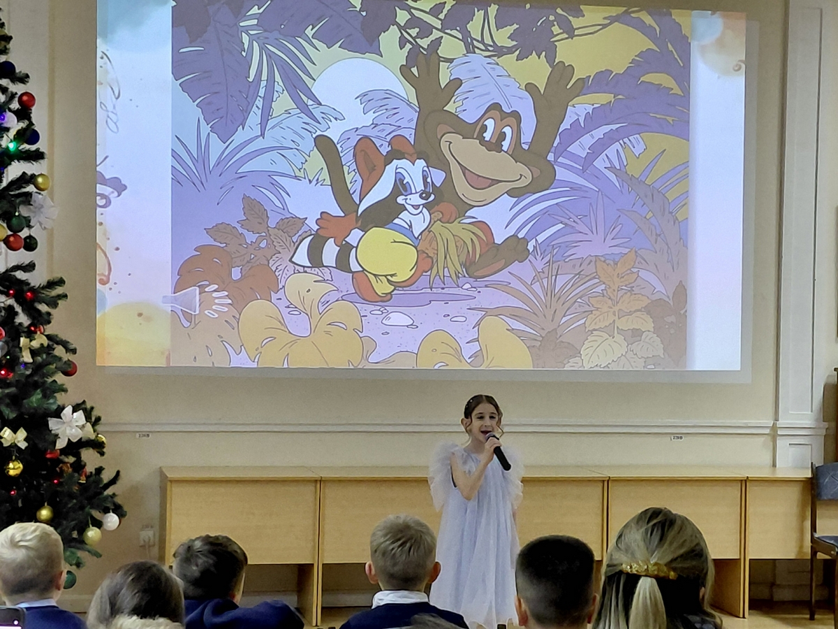На встрече дети увидели видеоролики и пели вместе с героями мультфильмов песни «Улыбка», «Голубой вагон», песенки Чебурашки и крокодила Гены, про мамонтенка, искавшего маму, «Облака» из мультфильма «Трям, здравствуйте», «Чунга-Чанга» из мультфильма «Катерок» и другие. Эти песни поют на протяжении многих лет, они эмоциональны, с удивленно-восторженным взглядом на мир.