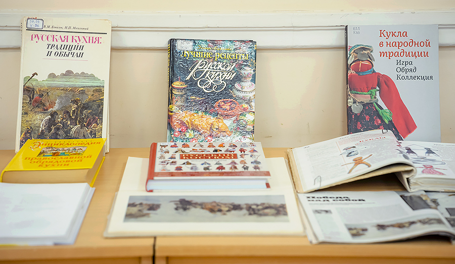 Не остались без внимания книги и журналы с рецептами блинов и других угощений, с помощью которых легко создать атмосферу традиционного русского застолья.