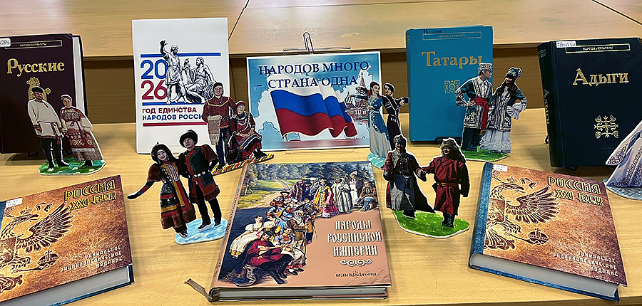 Молодежь познакомилась с литературой книжной выставки «Народов много – страна одна» из фонда Бунинки. Желающие могли запечатлеть себя в русском национальном костюме на фоне фотозоны «В Горнице».
