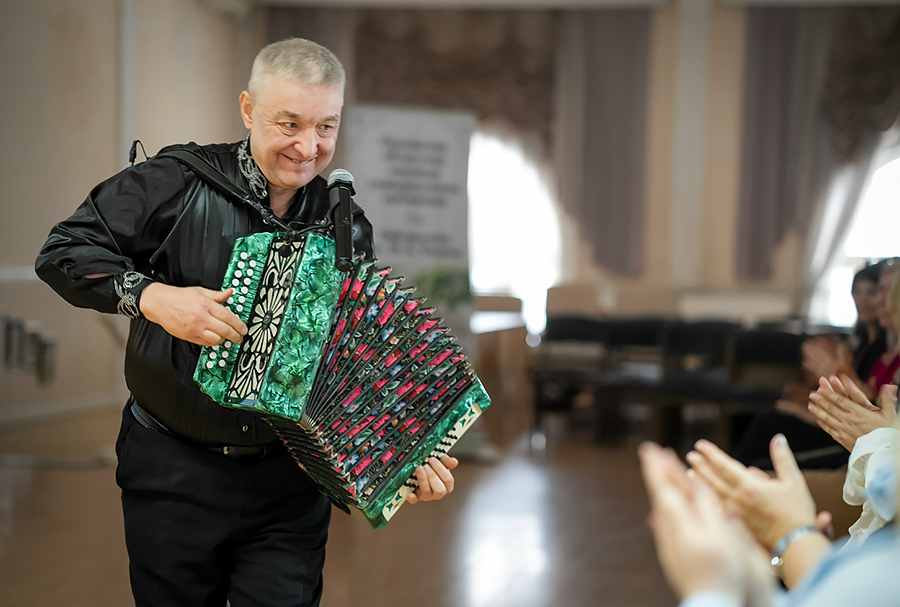 Особым украшением вечера стали музыкальные выступления. Зрители тепло приветствовали Заслуженного артиста Российской Федерации, Лауреата международных и всероссийских конкурсов Геннадия Калмыкова. Виртуозная игра маэстро на баяне, первого дипломированного гармониста-профессионала России, никого не оставила равнодушным, подарив публике истинное наслаждение. Не менее трогательным и проникновенным стало выступление юных дарований – студенток Орловского музыкального колледжа. Зрители наградили бурными аплодисментами дуэт в составе Виктории Владимировны Бондаренко и Марии Александровны Жерновковой, чье исполнительское мастерство стало достойным продолжением традиций, заложенных старшим поколением музыкантов.