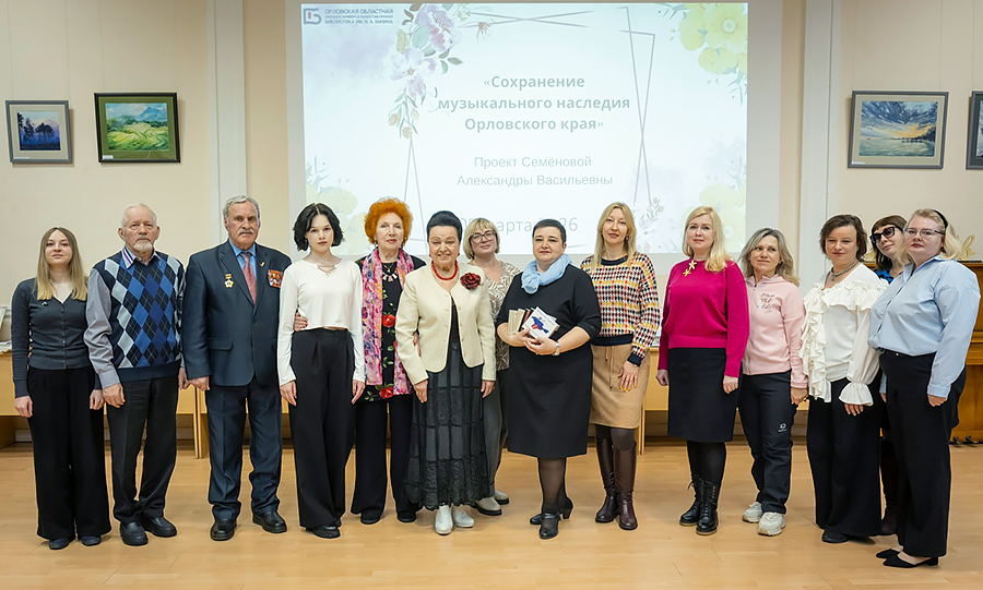 5 марта 2026 года в Орловской областной научной универсальной библиотеке им. И. А. Бунина прошла творческая встреча, посвященная удивительному человеку и знаковому для региона проекту. Гостем мероприятия стала бессменный председатель Орловского областного отделения Российского творческого Союза работников культуры, замечательная певица, Заслуженный работник культуры РФ, имя которой вписано в Книгу Почёта города Орла - Александра Васильевна Семёнова. Встреча собрала в стенах «Бунинки» истинных ценителей музыкальной культуры, коллег по творческому цеху, друзей и почитателей таланта Александры Васильевны. Вечер стал не просто данью уважения многолетнему труду общественного деятеля, но и важным событием в деле сохранения культурного наследия Орловщины.