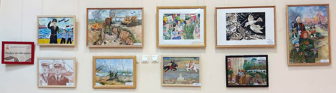 Каждая работа – это личные размышления юных художников о событиях Великой Отечественной войны, переданные через призму семейных воспоминаний, рассказов ветеранов и архивных материалов.