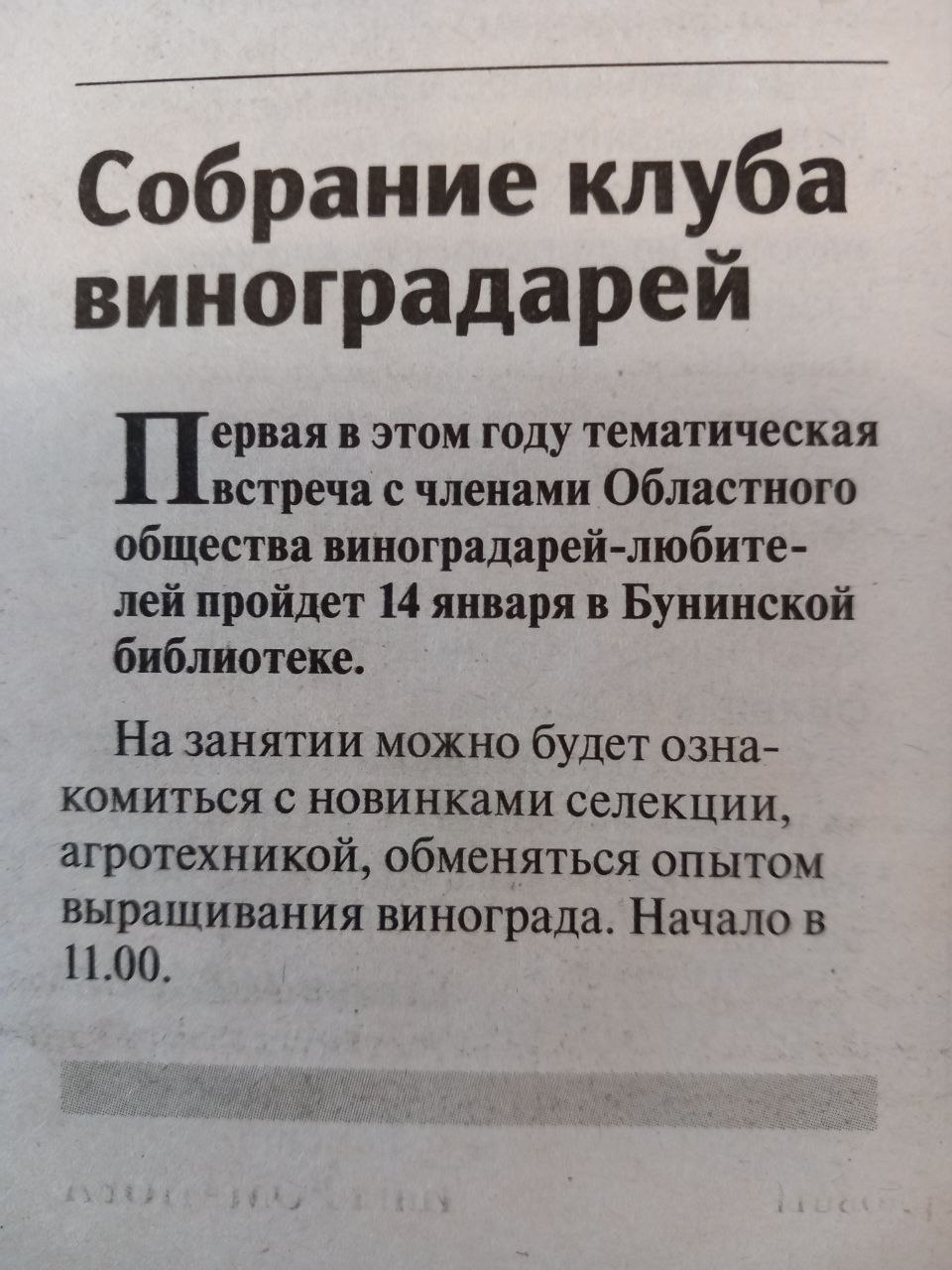 Собрание клуба виноградарей // Орловская городская газета. 2023. № 1 (13 января). С. 4. |