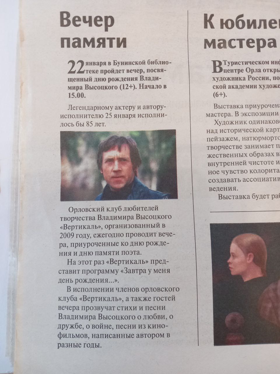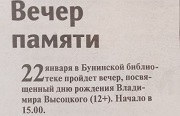 ![]() Вечер памяти// Орловская городская газета. – 2023. - № 2 (20 января). – С.8: фот. |