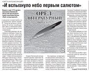 ![]() Кондратенко А. «Орёл литературный» // Орловская правда. 2023. № 21 (22 февраля). С. 12. |