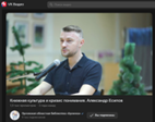 | Есипов А. Книжная культура и кризис понимания : [видеоинтервью] / А. Есипов, беседовала Н. Ставцева // Орловская областная библиотека «Бунинка» : [страница группы рос. соц. сети ВКонтакте]. 29 дек. 2022. 00:21:56 (время воспроизведения). URL: https://vk.com/video/playlist/-215540055_5?z=video-215540055_456239084%2Fclub215540055%2Fpl_-215540055_5 (дата обращения 26.06.2024). |