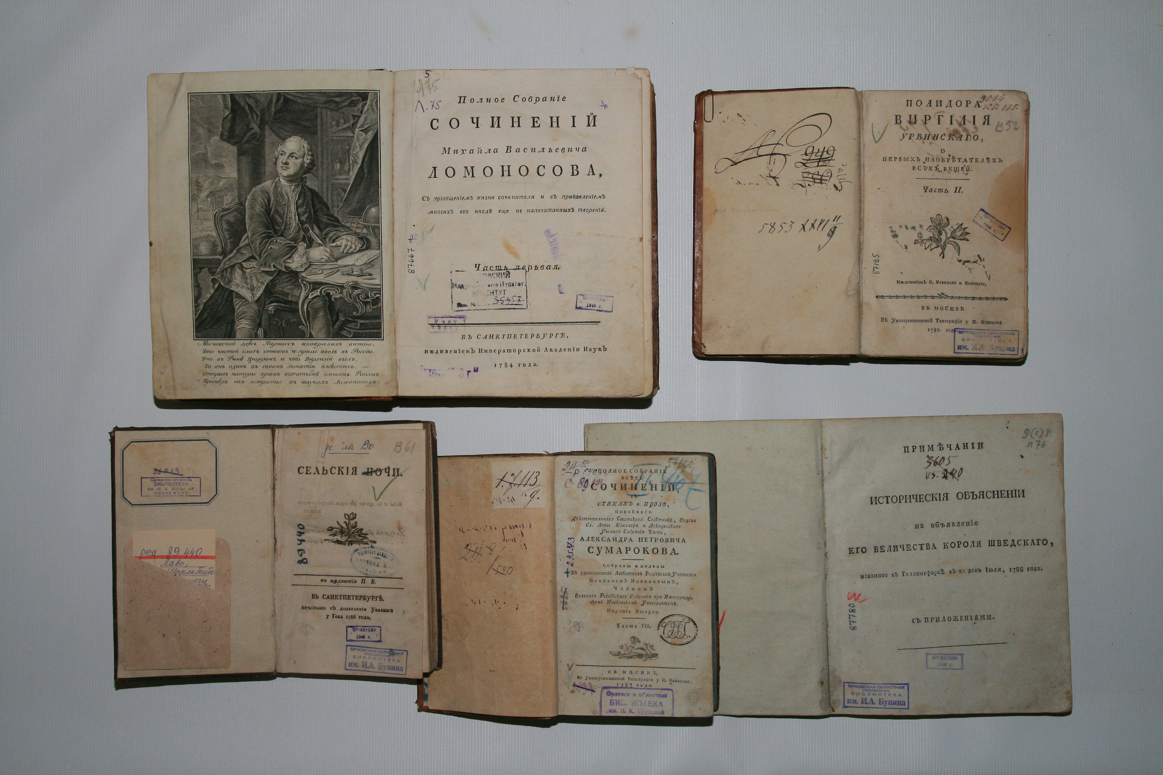 Коллекция русских книг гражданской печати XVIII в. насчитывает 740 экз. В том числе: