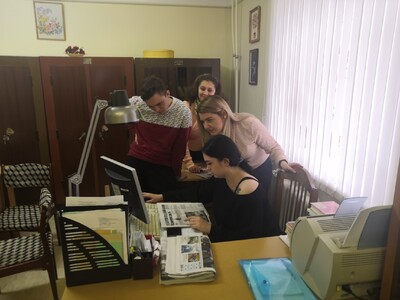 Библиотекарь Сорокина Е. А. знакомит студентов библиотечно-информационного факультета ОГИК с автоматизированным учётом периодических изданий в АБИС «ИРБИС64», преподаватель Беляева Н. Е.