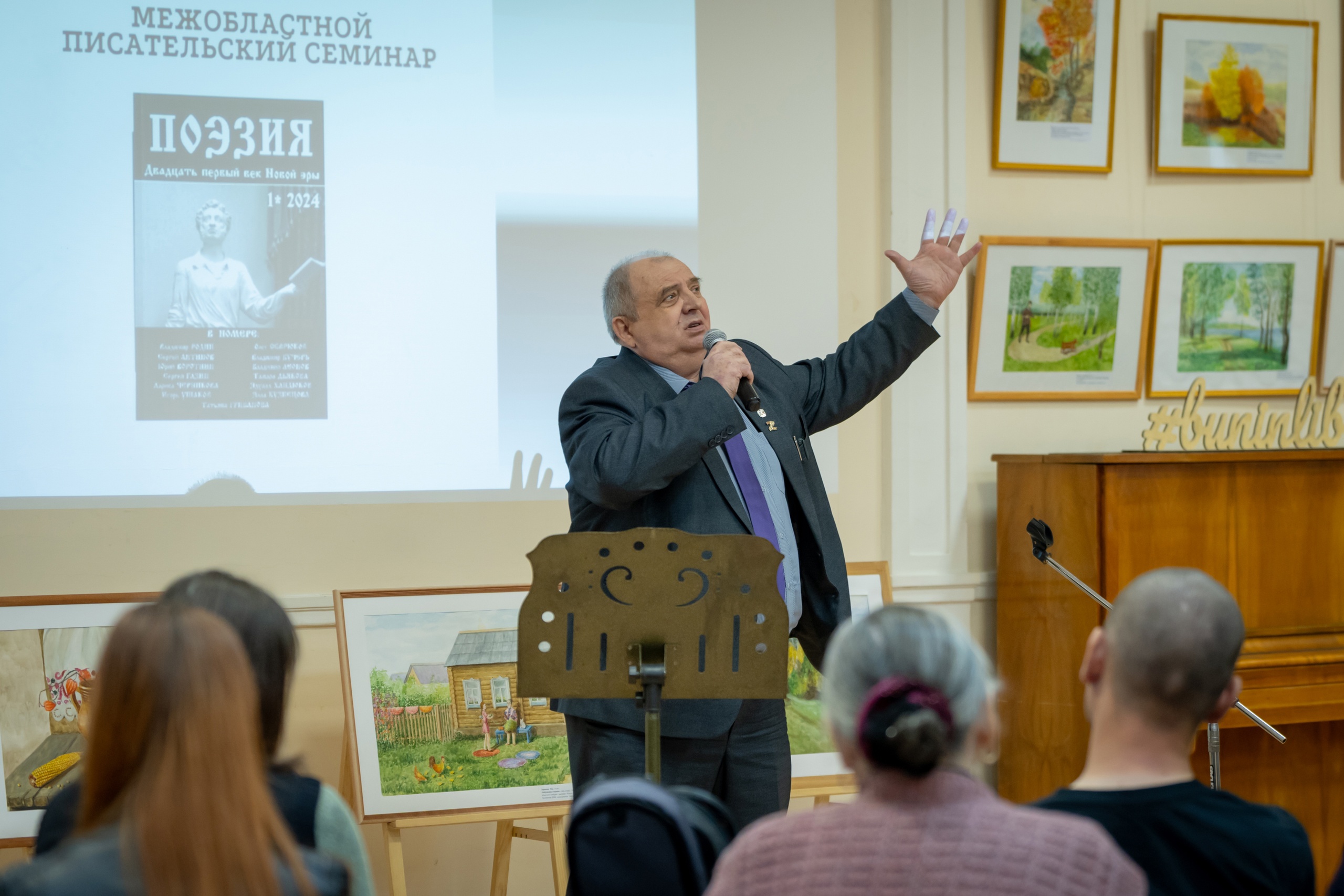 11 мая 2024 года в библиотеке прошло заседание Межобластного литературного семинара Союза писателей России. Среди гостей – представители Московской писательской организации, давно и очень интересно сотрудничающие с орловскими коллегами. Имена последних представлены в первом номере текущего года журнала «Поэзия» Его презентация и состоялась в первой части семинара.