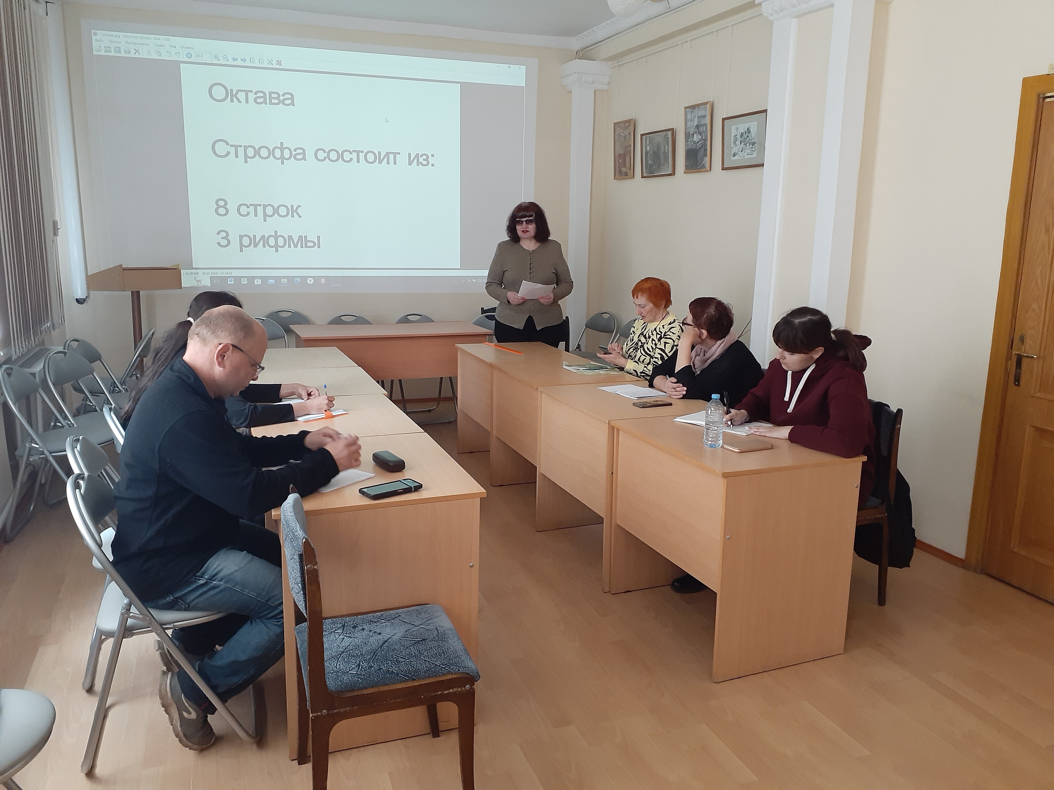 12 мая 2024 года в библиотеке состоялось новое занятие в рамках образовательного проекта «НеЛицей» творческого объединения «Брусчатка». Тема занятия: «Поэзия. Интенсив по твёрдым поэтическим формам. Октава».