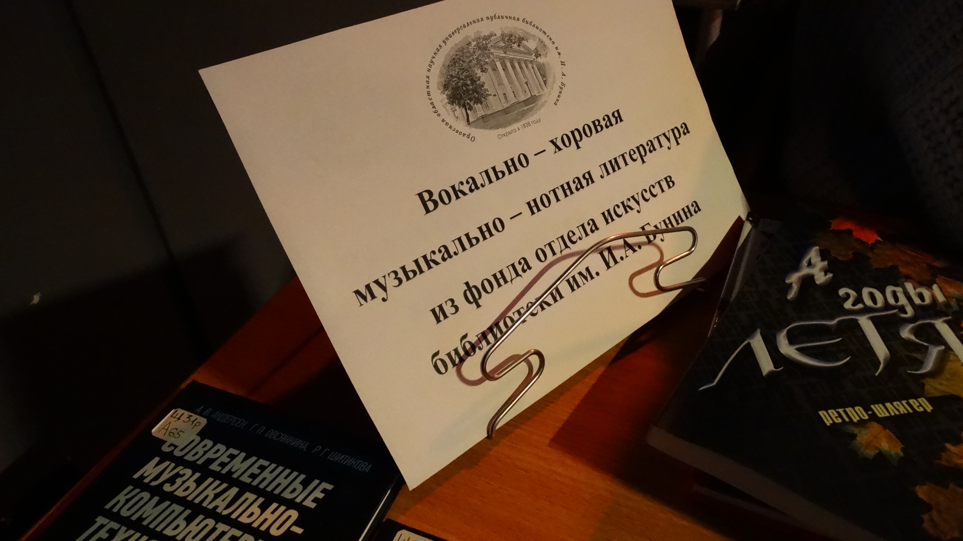 Сотрудники библиотеки оформили для мероприятия выставку-просмотр «Вокально-хоровая музыкально нотная литература из фонда отдела искусств библиотеки им. И. А. Бунина». Информационный обзор выставки подготовила и провела ведущий библиотекарь М. Дуничева. Представленная литература вызвала неподдельный интерес у участников форума: преподавателей ДМШ и ДШИ, руководителей хоровых коллективов г. Орла и Московской области. Особое внимание они обратили на несколько изданий. Среди них книги: Н. Поляковой «Детский голос: особенности развития, выбор репертуара», в которой автор определяет основные задачи вокального воспитания детей, В. Левко «Культура сольного пения. Методические очерки», отражающие продуманную систему работы с молодыми исполнителями, учебное пособие Л. Скафтымовой «Вокально-симфоническое творчество С. В. Рахманинова и русская кантата начала ХХ века». В основе пособия разбор произведений Рахманинова «Весна», «Колокола». «Три русские песни». Среди нотных изданий: «Сборник переложений для женского и детского хора» Б. Казурова – плод долгой и многолетней работы автора в студенческих и детских хорах, обработки русских народных песен для детского хора без сопровождения выдающегося хормейстера В. Соколова «Ты рябина ли…», учебно-методическое пособие для педагогов вокально-хоровых дисциплин школ искусств, учителей музыки общеобразовательных школ «Кукла Марина» орловского композитора Ирины Хрисаниди, творчество которой известно далеко за пределами нашего региона.