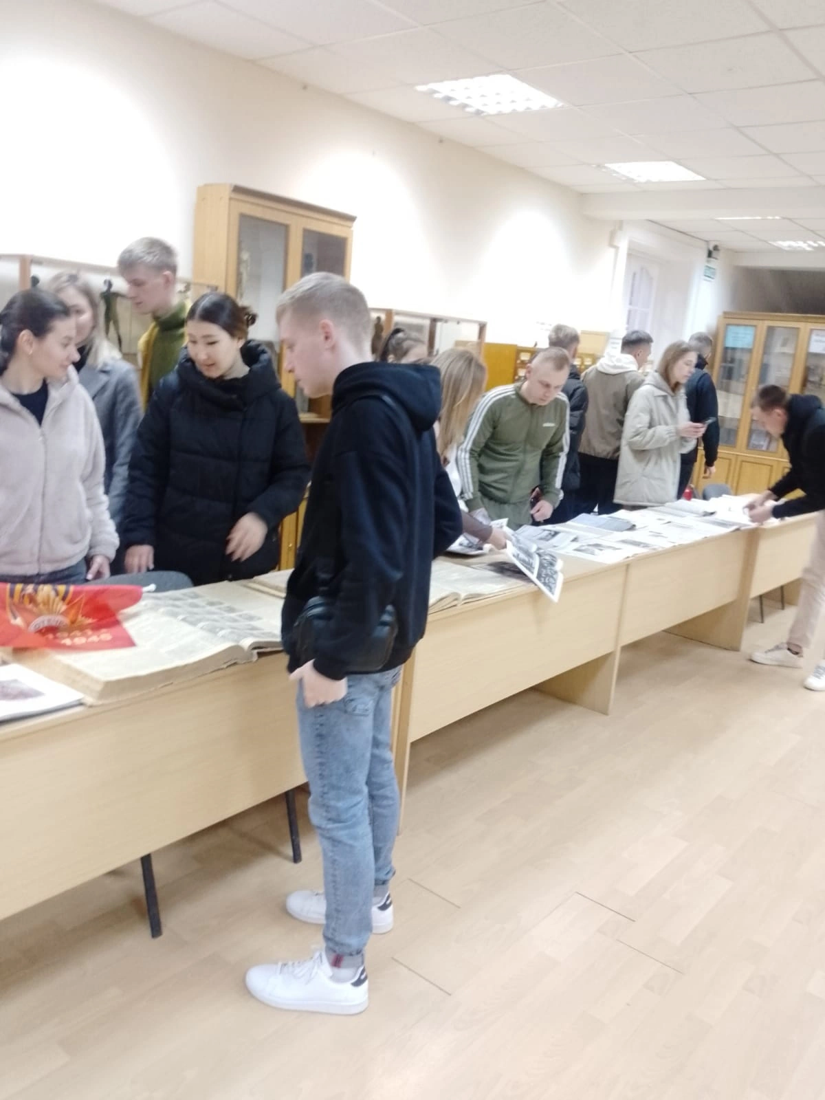 В ходе беседы у выставки, они ознакомились с ключевыми этапами Великой Отечественной войны. Курсантов заинтересовала предложенная экспозиция, на которой были представлены периодические издания: «Российская Федерация сегодня», «Огонек», «Военно-исторический журнал», «Наш современник» и др., где рассказывается о героических и трагических моментах, легших в основание той дороги, которая привела наш народ к Великой Победе.
