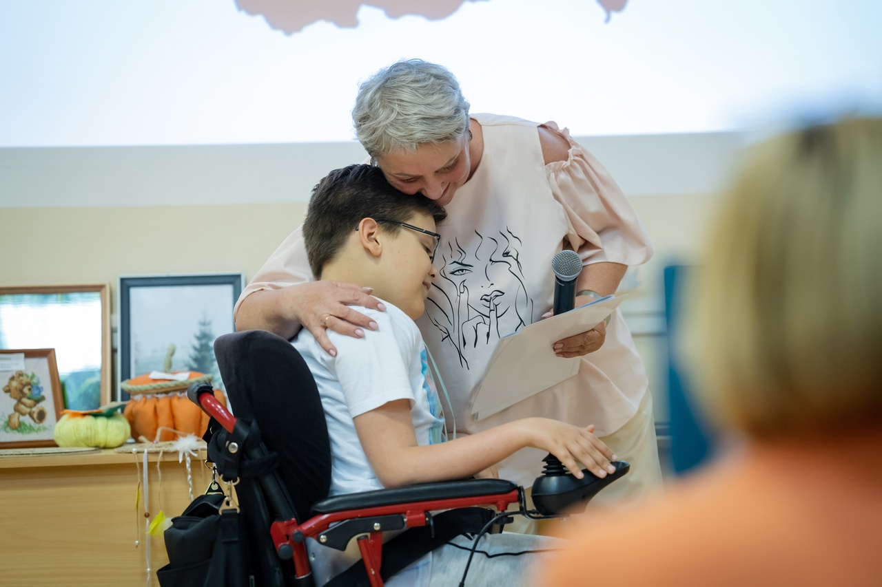 На праздничном мероприятии поздравляли и награждали всех участников выставки художественного творчества «Особенный взгляд». За удачи и победы им вручали благодарственные письма, награждали дипломами и ценными подарками, а еще общались, пели, танцевали вместе с клоунессой Акварелька и детским коллективом «Серпантин». В завершение праздника все победители были приглашены для общего фото и памятного флешмоба.