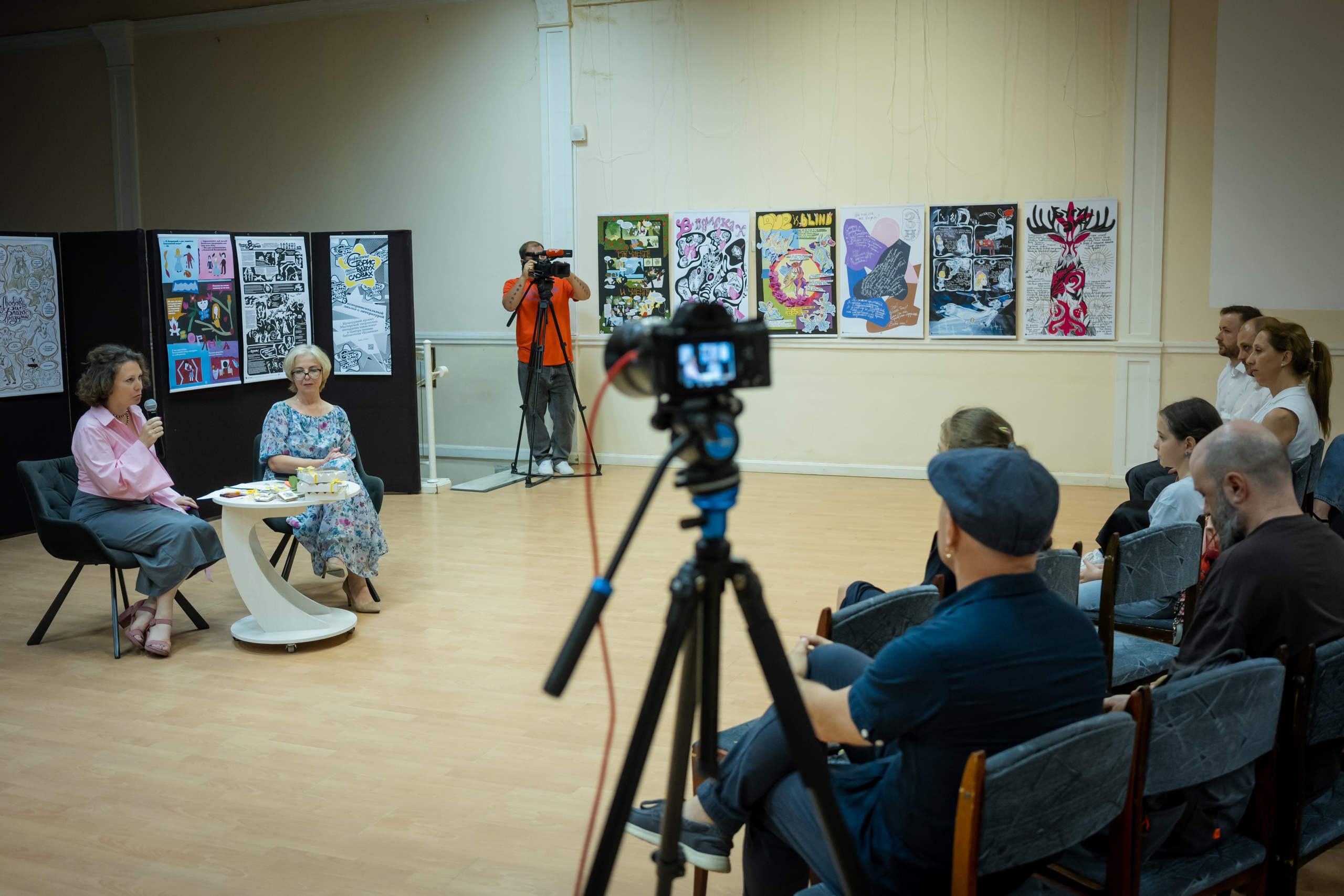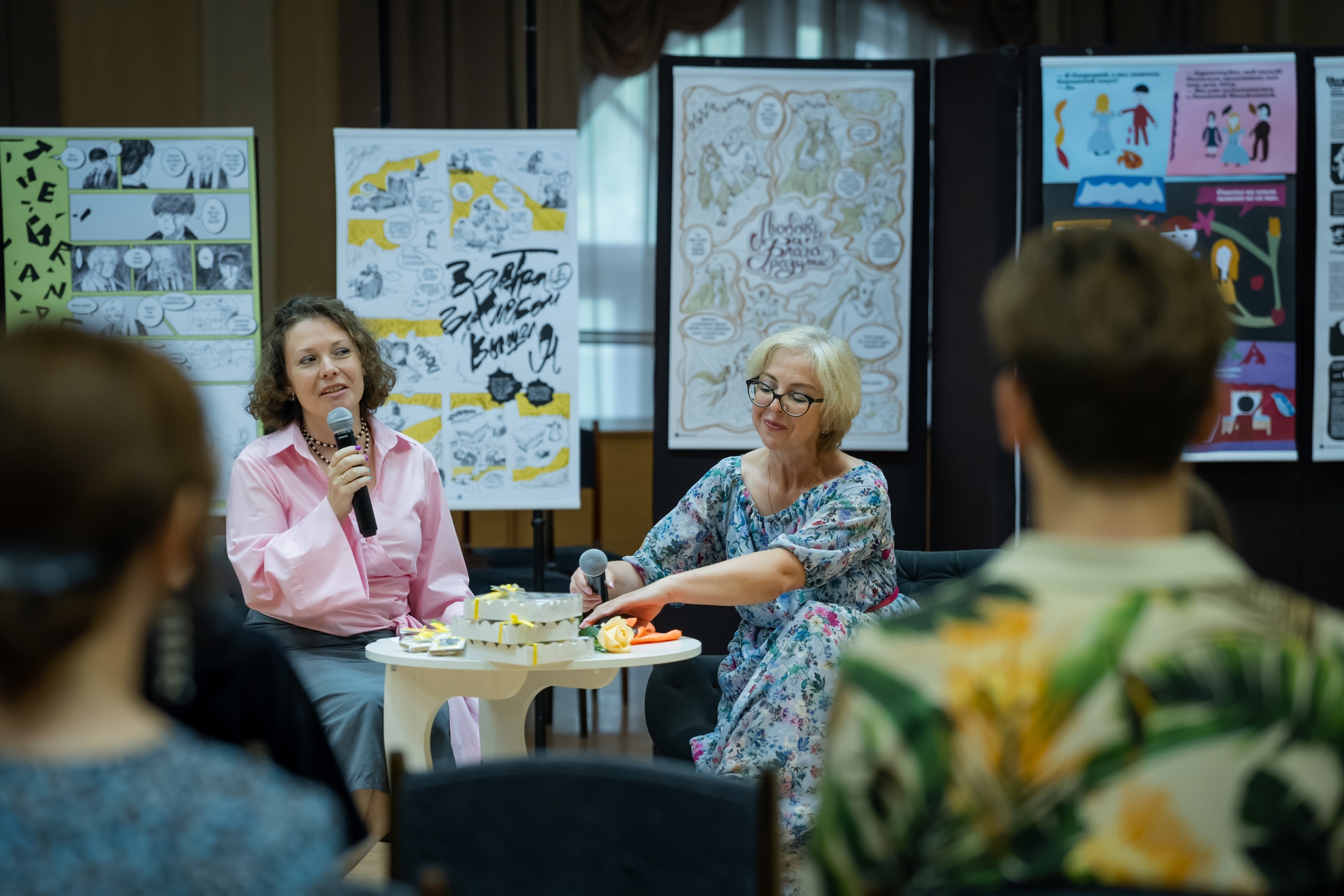 В 14:00 на суд зрителей представили выставку литературных постеров, ставшую результатом культурного челленджа «Графические истории». Центр чтения стал партнером проекта, инициированного лабораторией «дваслова».