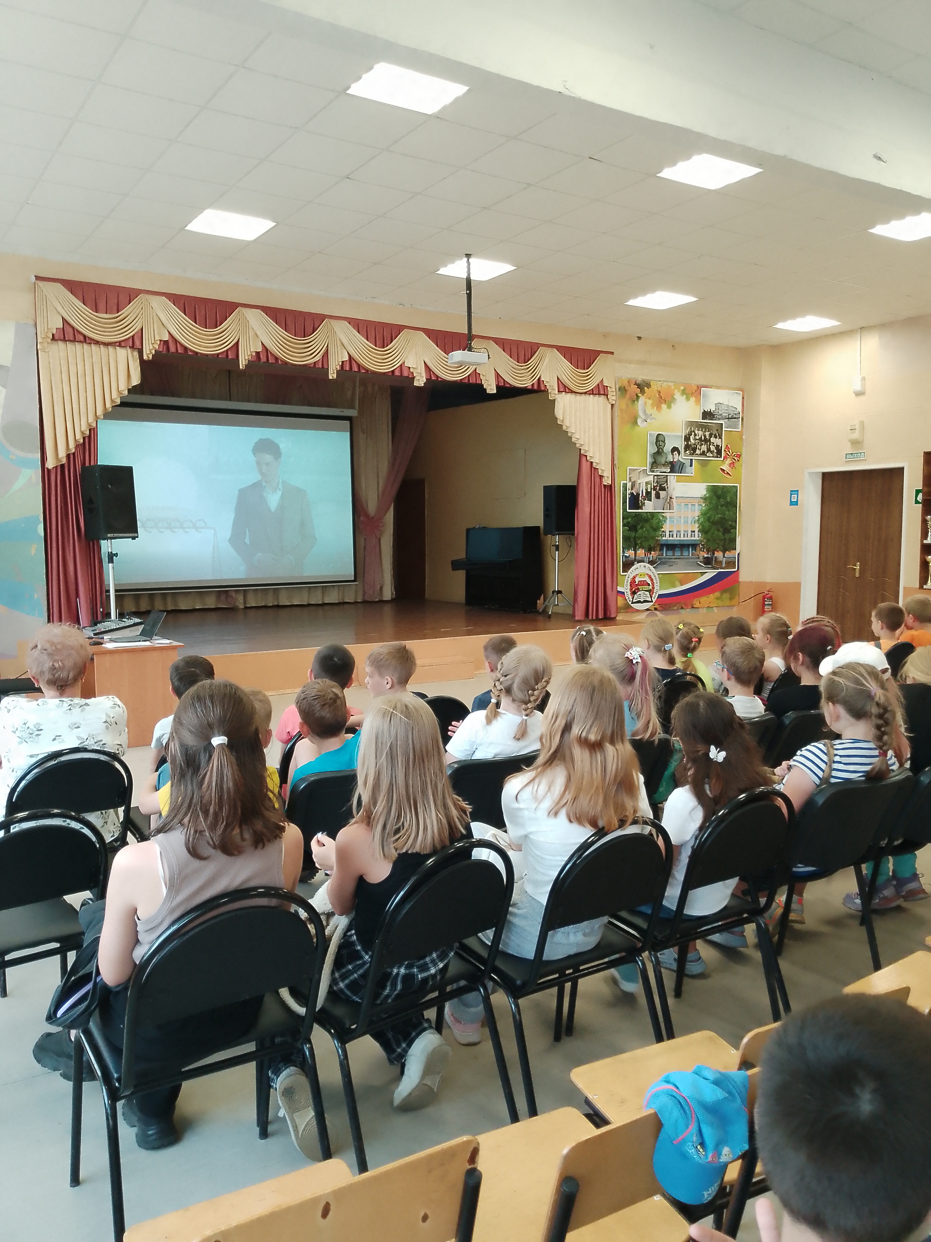 Дети из 11 школы смотрят отрывок из фильма о наших воинах
