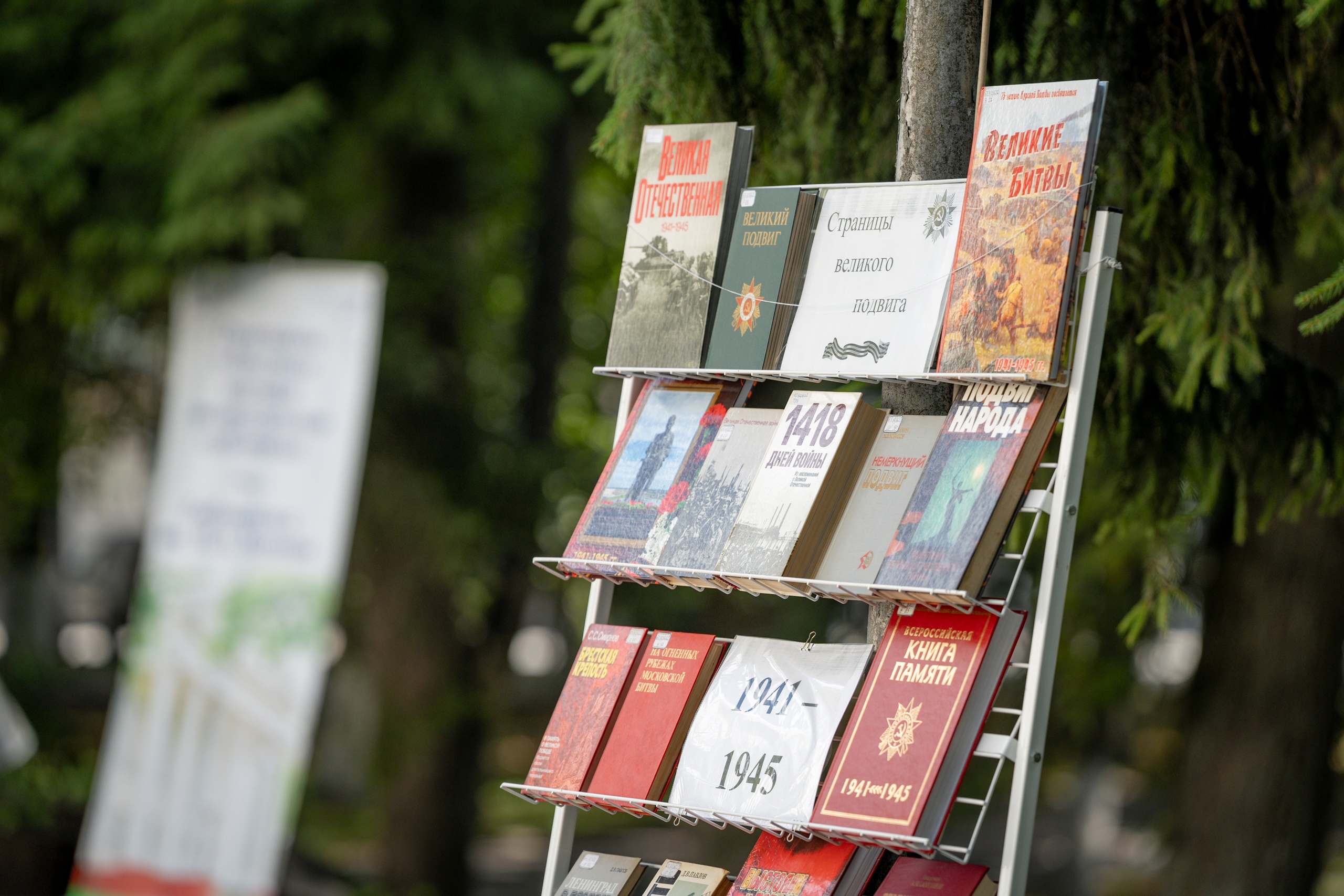На экспозиции были представлены книги об основных сражениях ВОВ и её участниках, проявивших героизм и силу духа многонационального советского народа, отстоявшего в те годы независимость Родины.