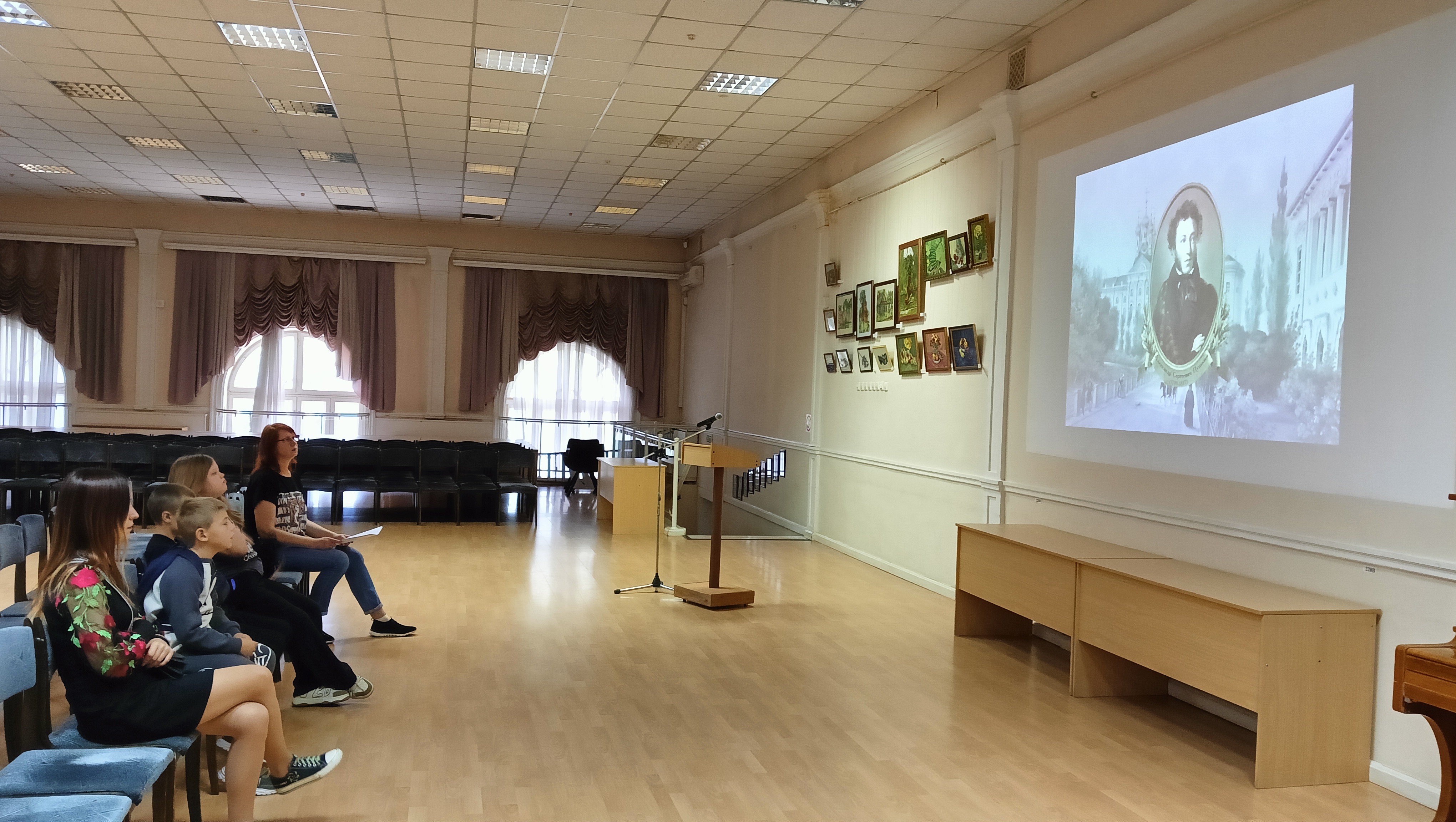 Встреча началась с приветственного слова ведущего о том, как важно наследие Пушкина для русской культуры. Затем участникам показали презентацию с фрагментами документальных фильмов о детстве и юности поэта. Это позволило лучше понять, откуда берёт начало творчество Пушкина.