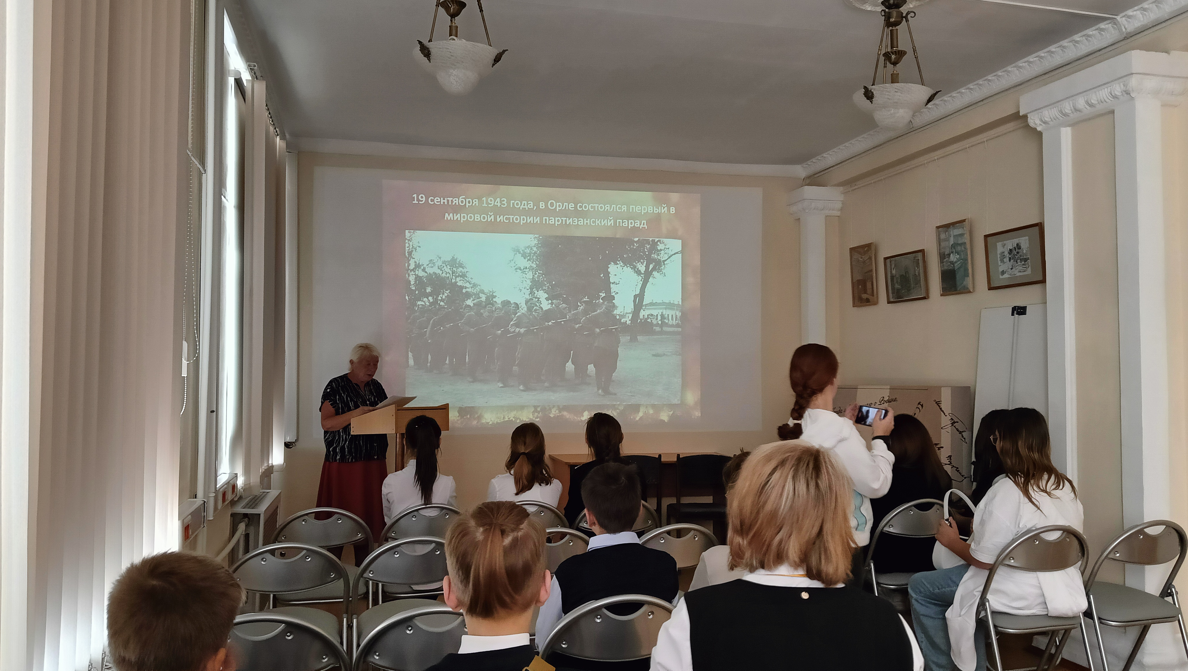 19 сентября 2024 года в библиотеке прошла встреча-беседа «Не померкнет слава партизан», посвящённая партизанскому движению в годы Великой Отечественной войны и приуроченная к очередной годовщине первого парада партизан, воевавших в Орловской области в 1941 – 1943 гг. Мероприятие было организовано с целью сохранения исторической памяти о героическом прошлом нашей страны.