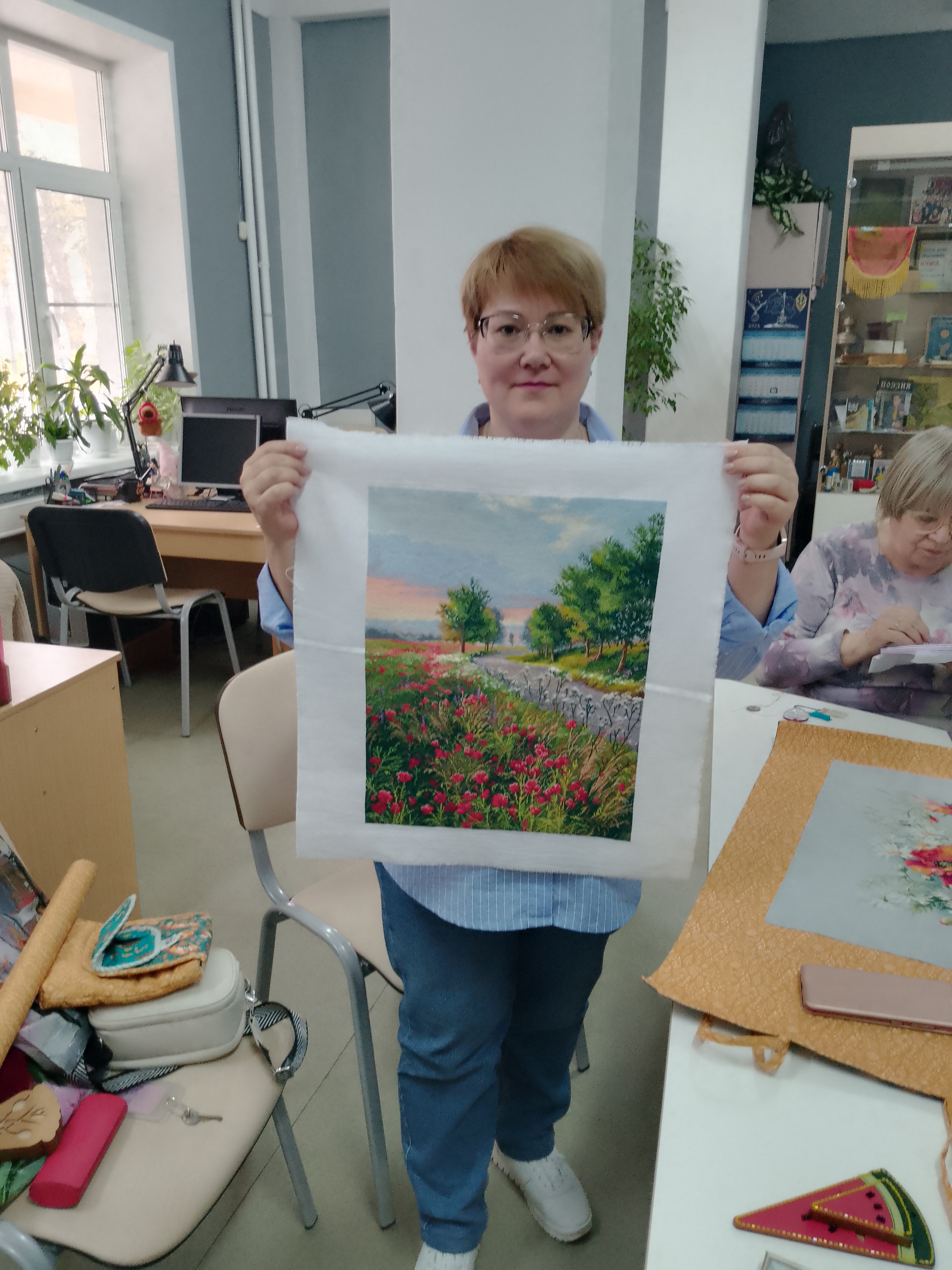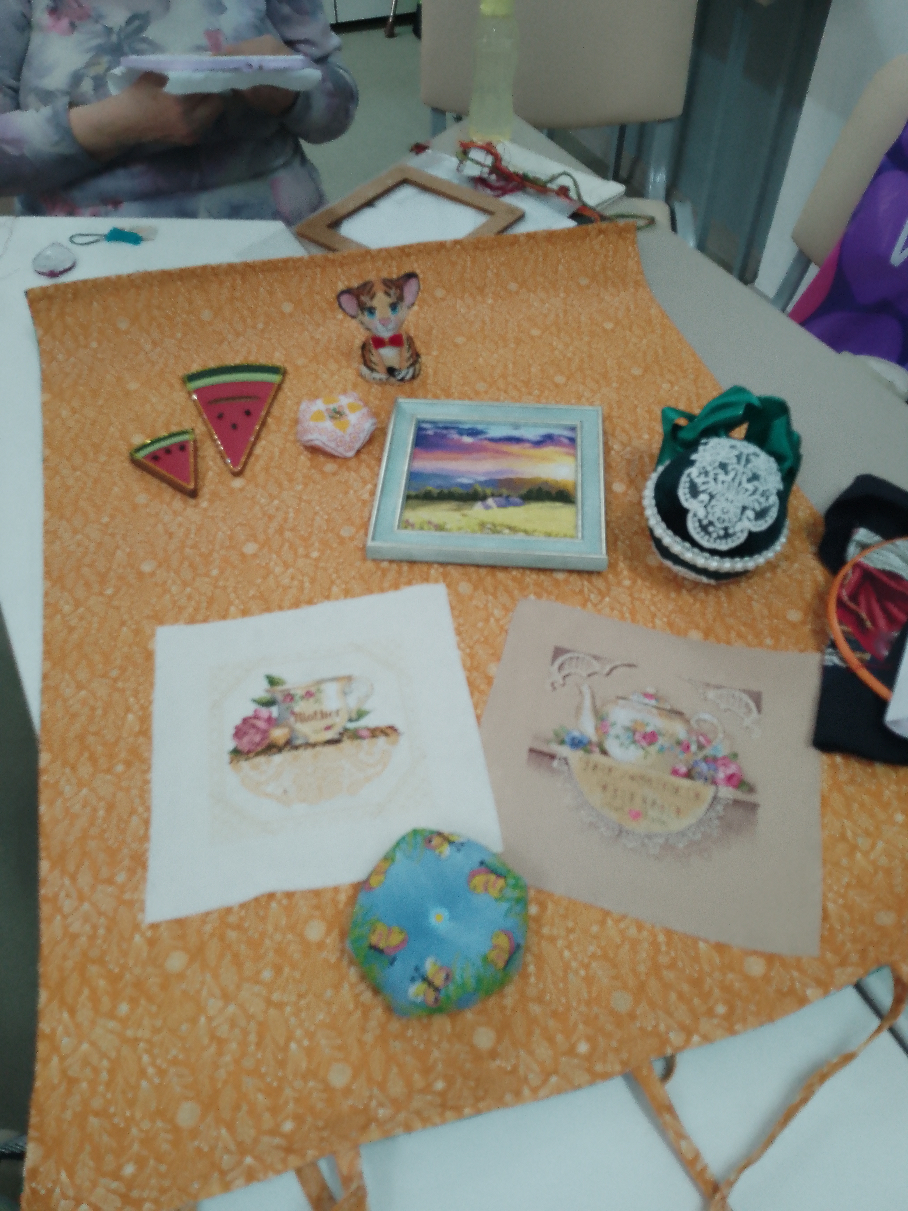 На встрече рукодельницы предложили вниманию свои новые вышивки. Мастерицы рассказывали о своих работах, о том, как они начали вышивать и делились опытом.