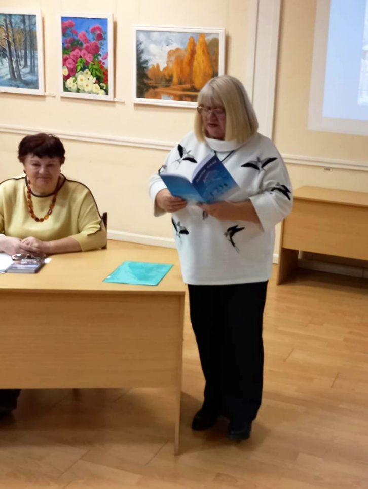По традиции мероприятие открыла Р. И. Морозова. Она пожелала всем участникам в наступившем году здоровья, благополучия, новых творческих успехов. Раиса Ивановна рассказала о своей поездке в Брянск на 13-е межрегиональные чтения имени П. Л. Проскурина и конечно прочила новые стихи.