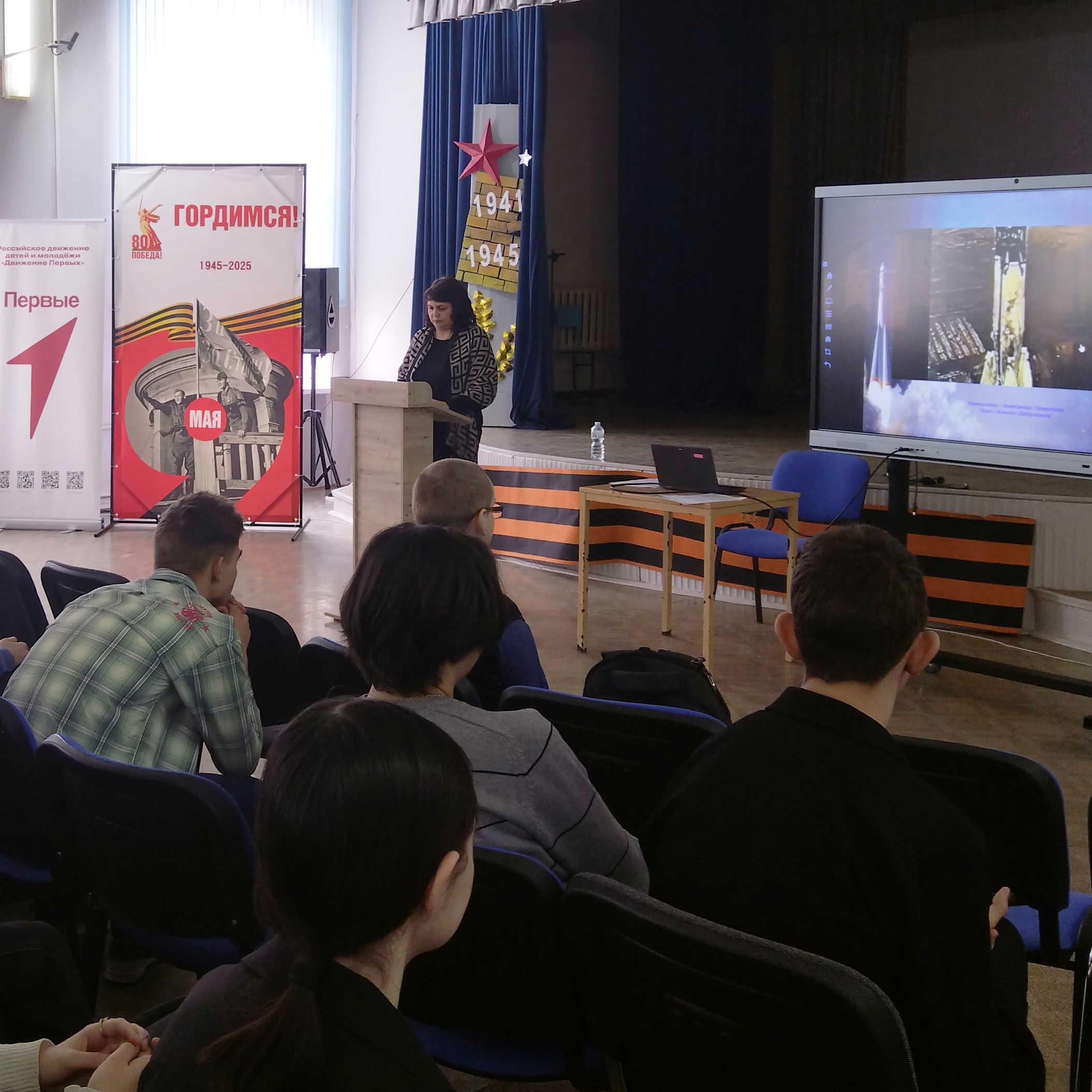 10 апреля 2025 года сотрудники отдела производственной литературы провели познавательный час «Звёздные старты» для учащихся старших классов МБОУ - СОШ № 12 им. И. Н. Машкарина.