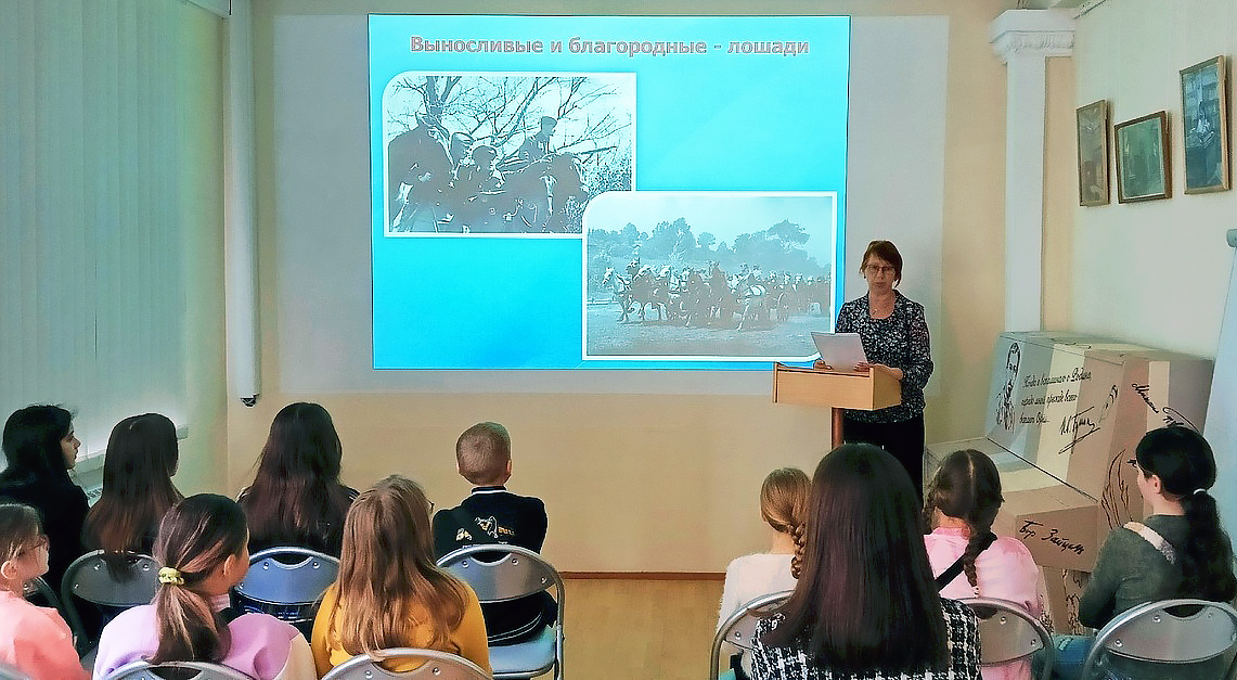 Школьники узнали, что на основе рассказов ветеранов и рассекреченных ранее недоступных военных документов, существуют письменные свидетельства, которые приоткрывают завесу над одним из удивительных фактов Великой Отечественной войны: в тяжелые годы рядом с солдатами на фронте воевали и те, кого мы называем братьями нашими меньшими: звери и птицы.