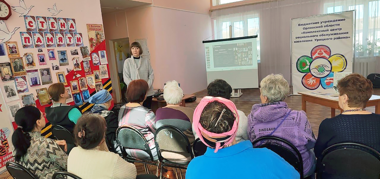 15 апреля 2025 года для получателей услуг БУОО «КЦСОН Урицкого района» сотрудники библиотеки, в рамках реализации проекта «Знаменитые люди Орловского края», провели патриотический час «Наши земляки – Герои Отечества» (Участники СВО).