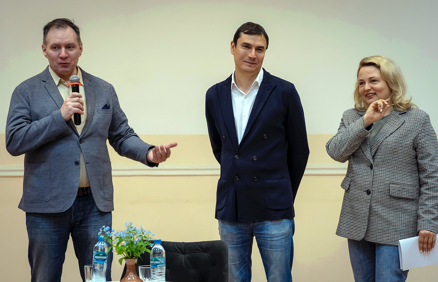 Гости встречи С. Шаргунов, Н. Елизарова, Д. Духовской