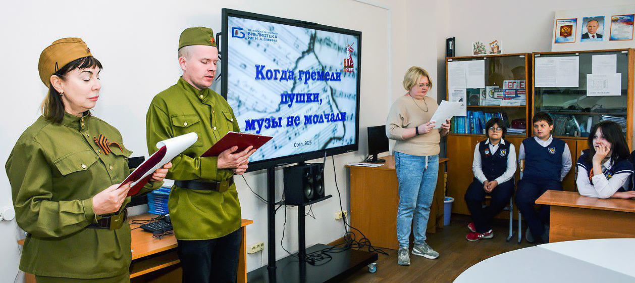 Учащиеся познакомились с песней «Синий платочек» в классическом исполнении Клавдии Шульженко. А знаменитое стихотворение Константина Симонова «Жди меня», тронувшее зрителей до глубины души, прозвучало с экрана в исполнении участников СВО.