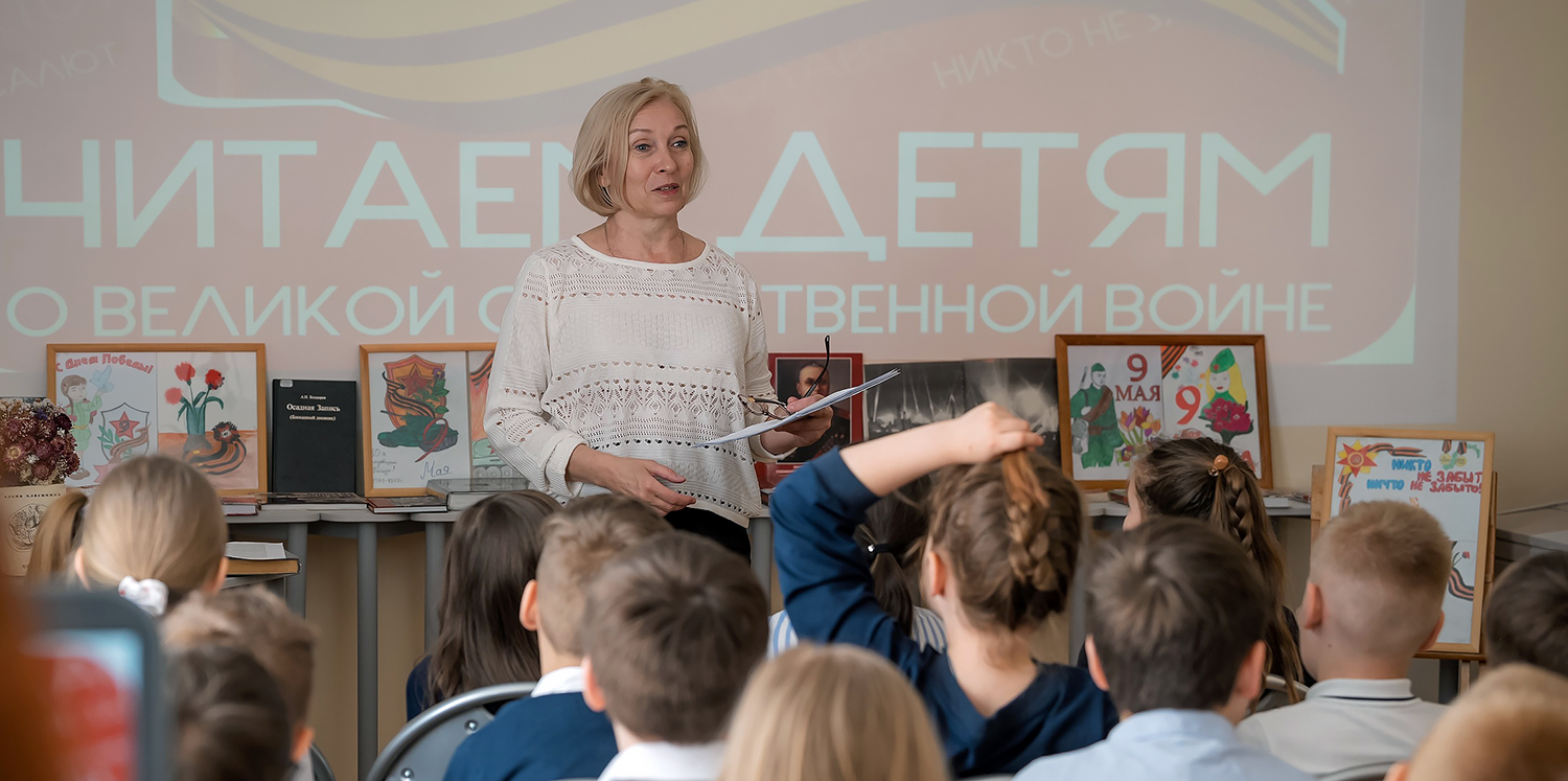Детям рассказали о боевом и творческом пути военных поэтов, прочли написанные ими с 1941 по 1945 года стихотворения. Кроме того, школьники услышали рассказ о том, как простые красноармейцы во время войны начинали писать стихи о Родине, об однополчанах, о вере в неминуемую победу над вероломным врагом.