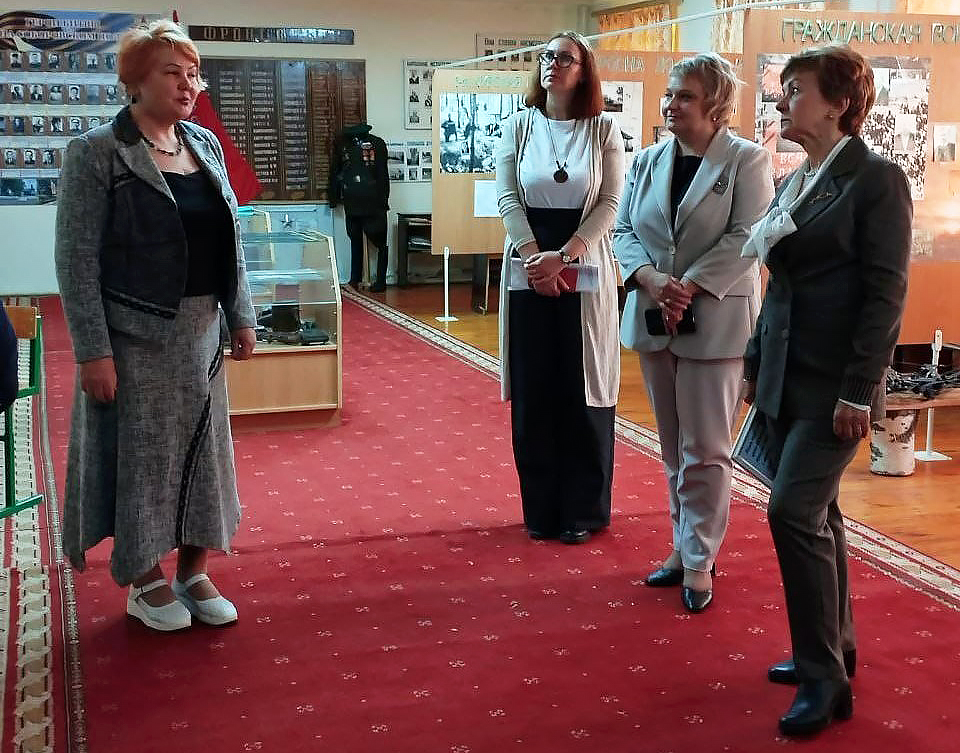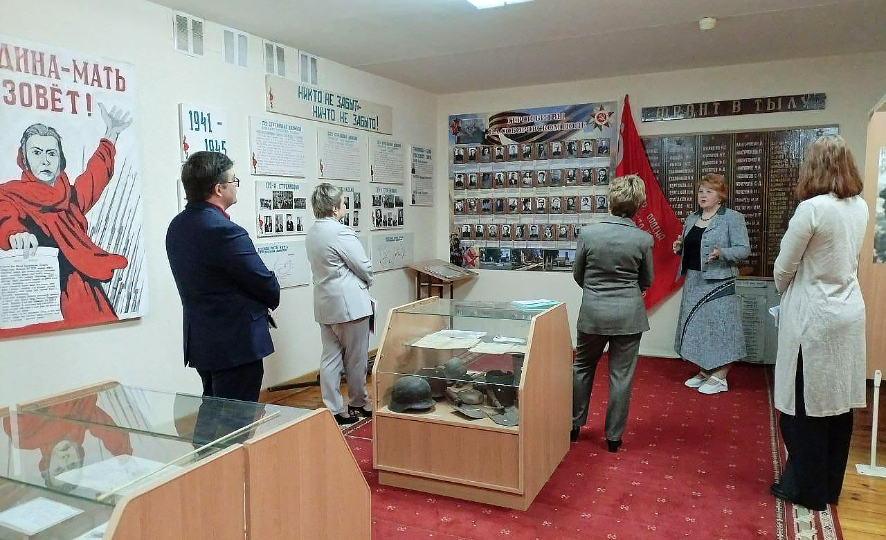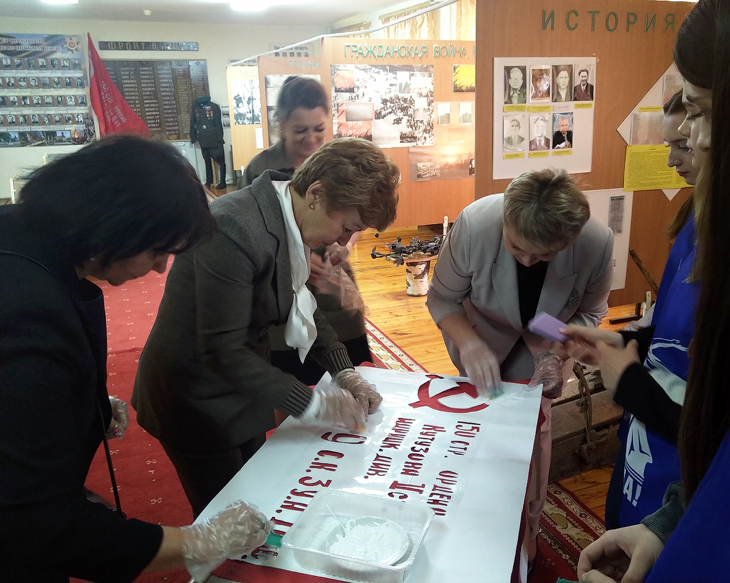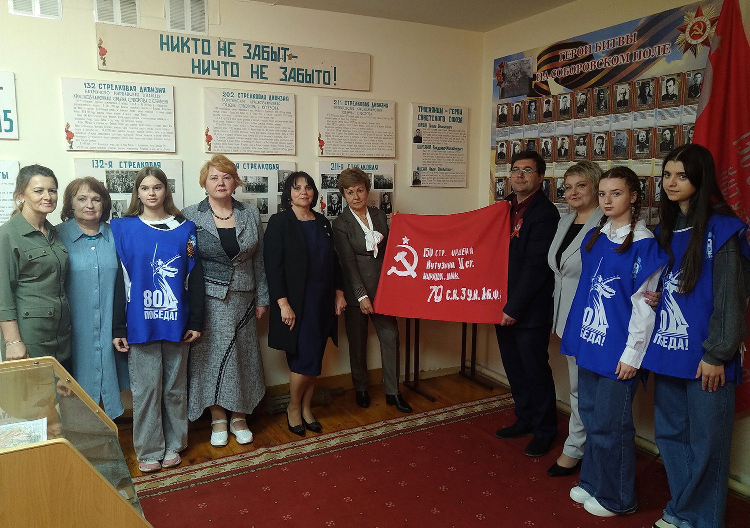 В свою очередь преподаватели Троснянской СОШ провели для гостей из Орла экскурсию по школьному музею и пригласили поучаствовать в патриотическом флешмобе по созданию Знамени Победы.