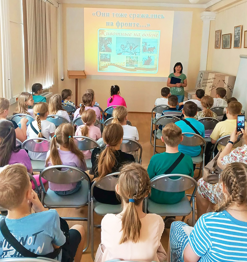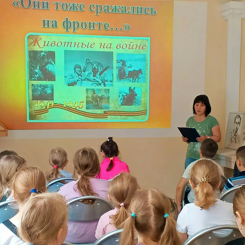 24 мая 2025 года сотрудники библиотеки провели для учащихся МБОУ гимназия №21 имени генерала А. П. Ермолова г. Орла исторический час «Они тоже сражались на фронте…», посвященный животным-участникам Великой Отечественной войны.
