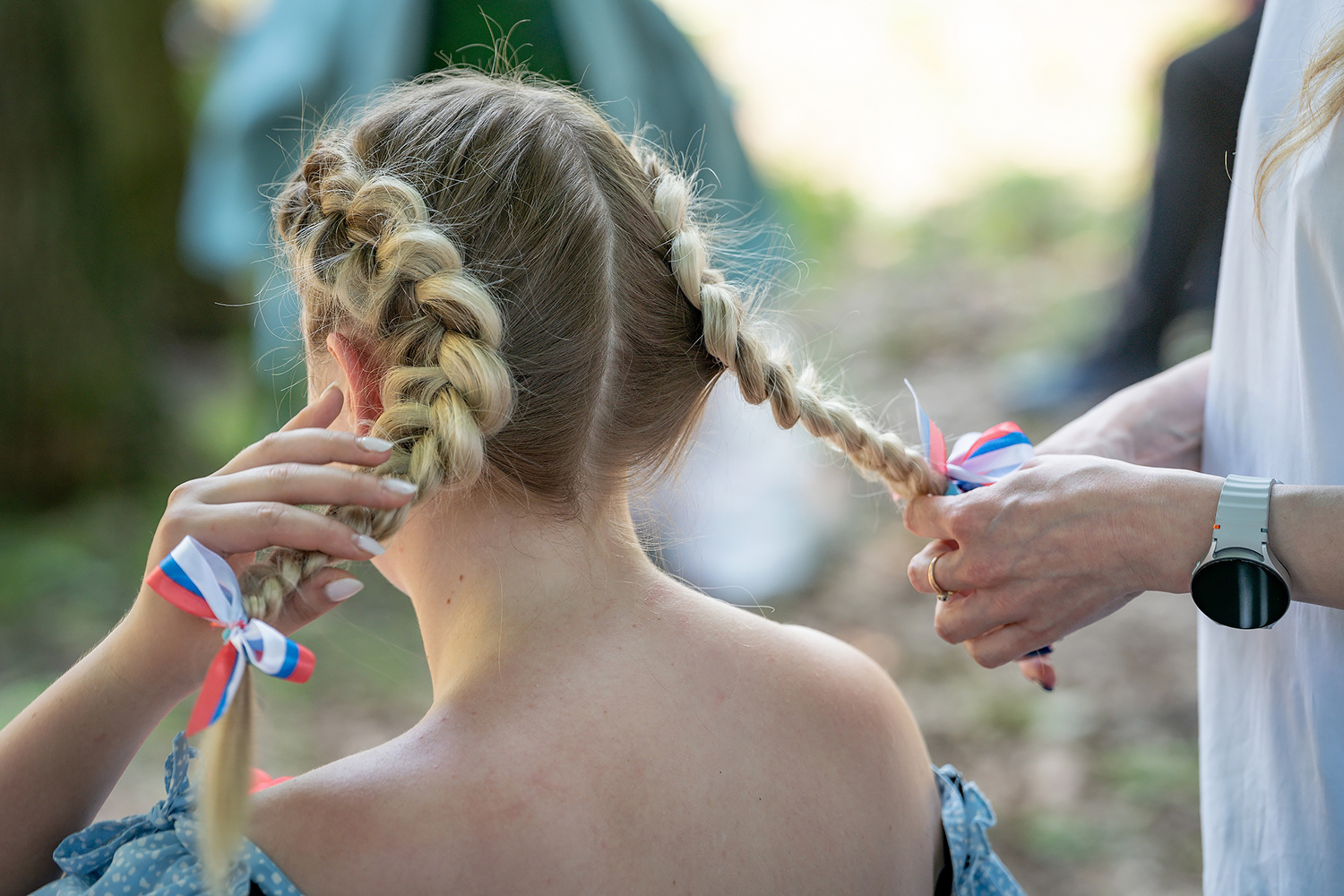 Особый интерес вызвала возможность заплести косу на нашем праздничном пятачке. На Руси девичья коса носила особый смысл. Достаточно было одного взгляда, чтобы понять – это девица на выданье или ещё достаточно юна, чтобы об этом думать; замужняя ли это женщина или вдова; ожидает ли ребенка или мужа из военного похода…