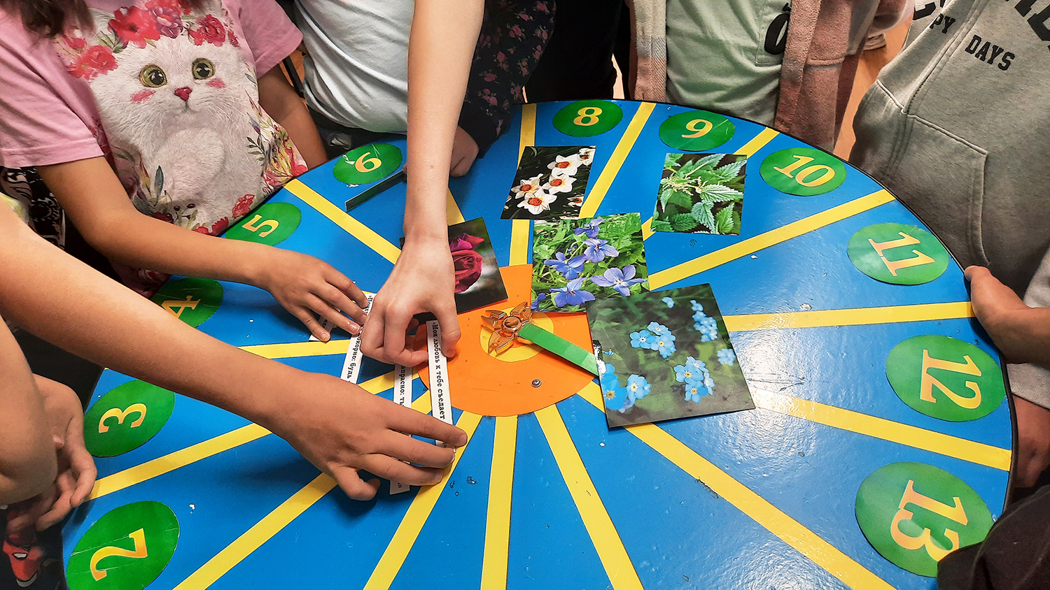 Дети с большим энтузиазмом крутили волчок, что делало процесс игры еще более захватывающим и динамичным.