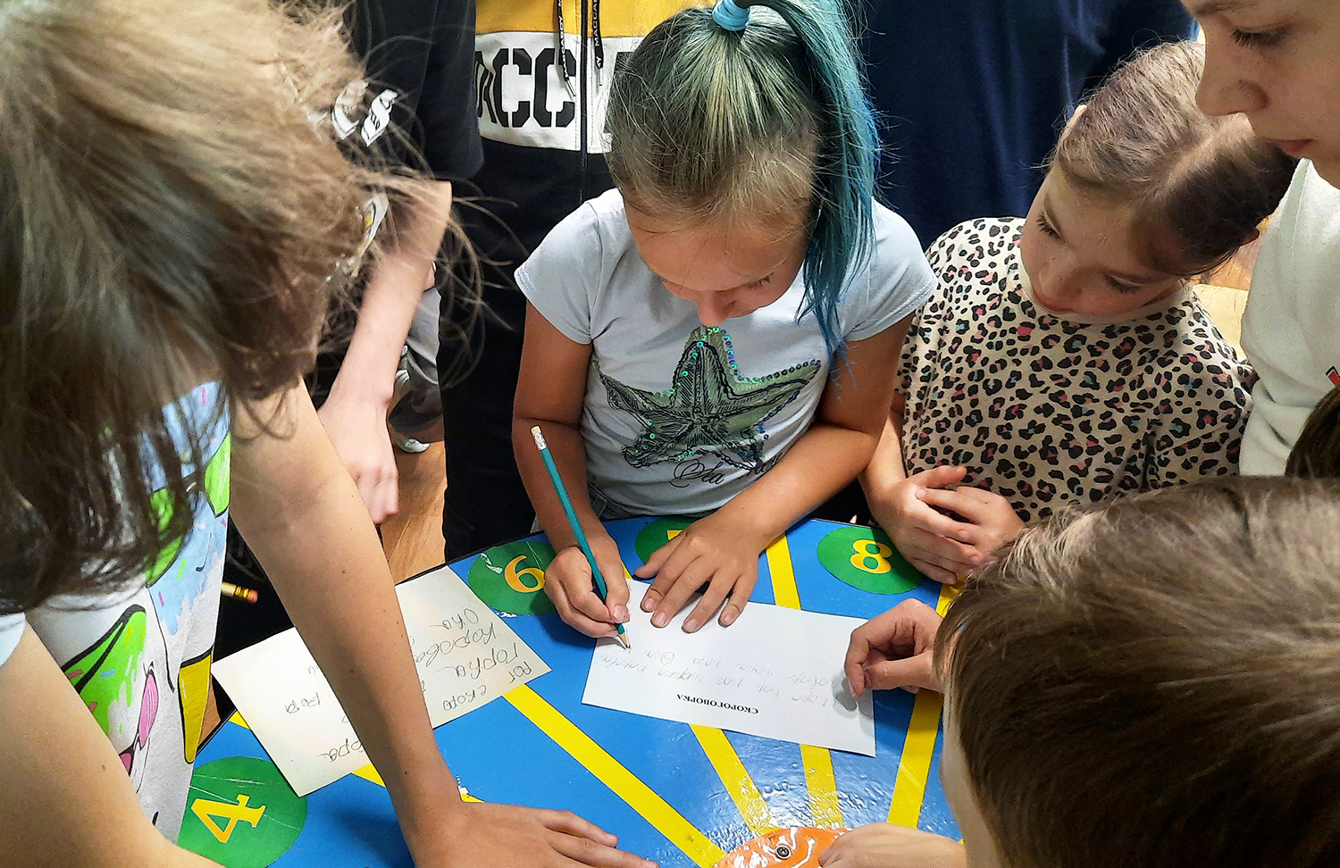 На библиографическую игру «Крутится волчок» пришли школьники из 3-х групп школьного лагеря разных возрастов: от ребят постарше до совсем маленьких.