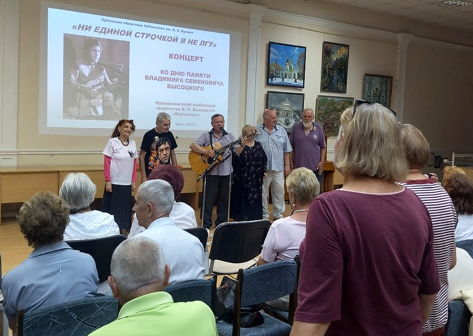 27 июля в библиотеке им. И. А. Бунина прошел концерт орловского клуба любителей творчества В. С. Высоцкого «Вертикаль», посвященный Дню памяти В. С. Высоцкого: «Ни единой строчкой я не лгу».