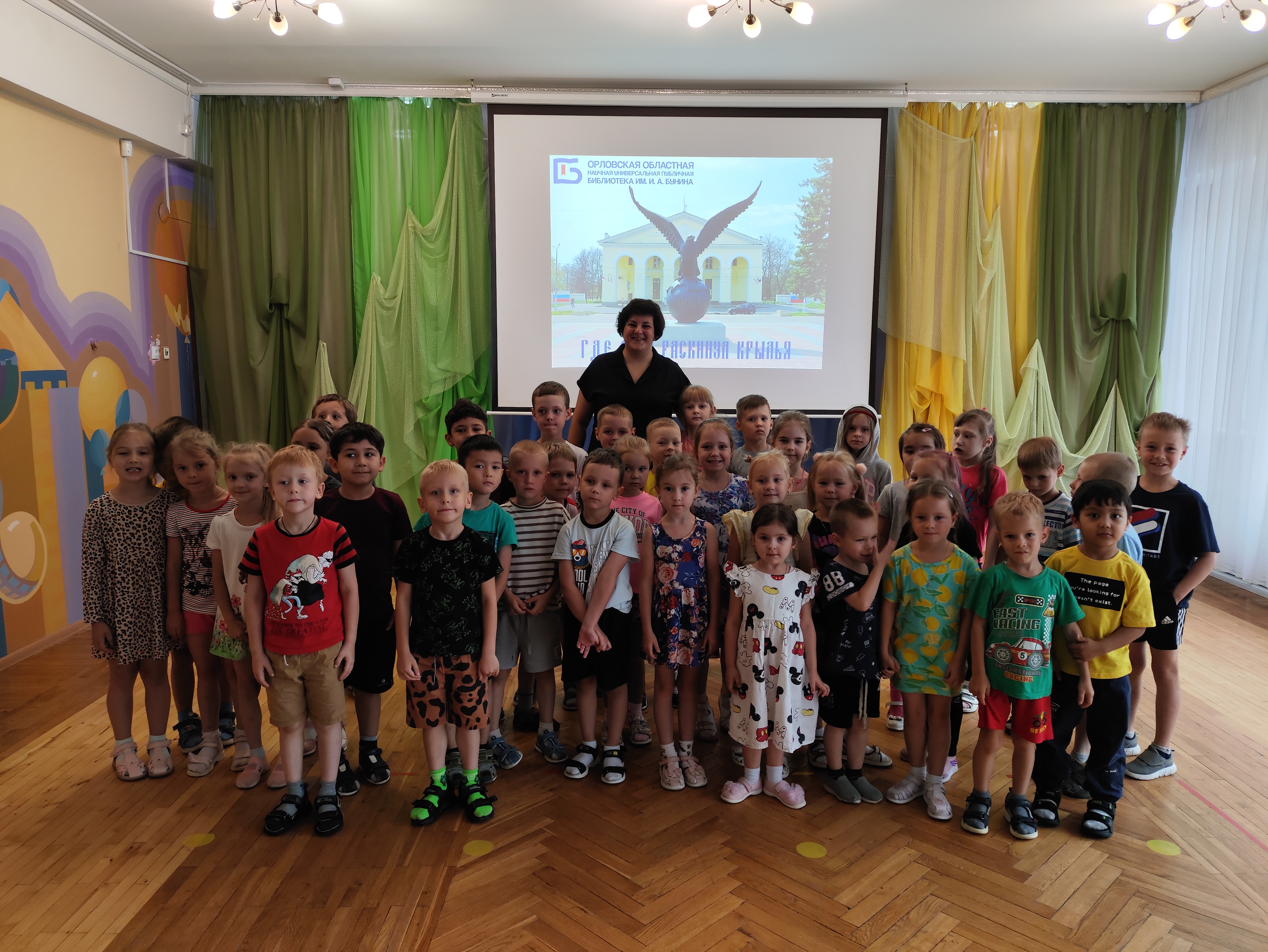 4 августа 2025 года, в преддверии дня города сотрудники библиотеки им. И. А. Бунина посетили детский сад №82 с музыкально-патриотическим часом «Где Орел раскинул крылья».