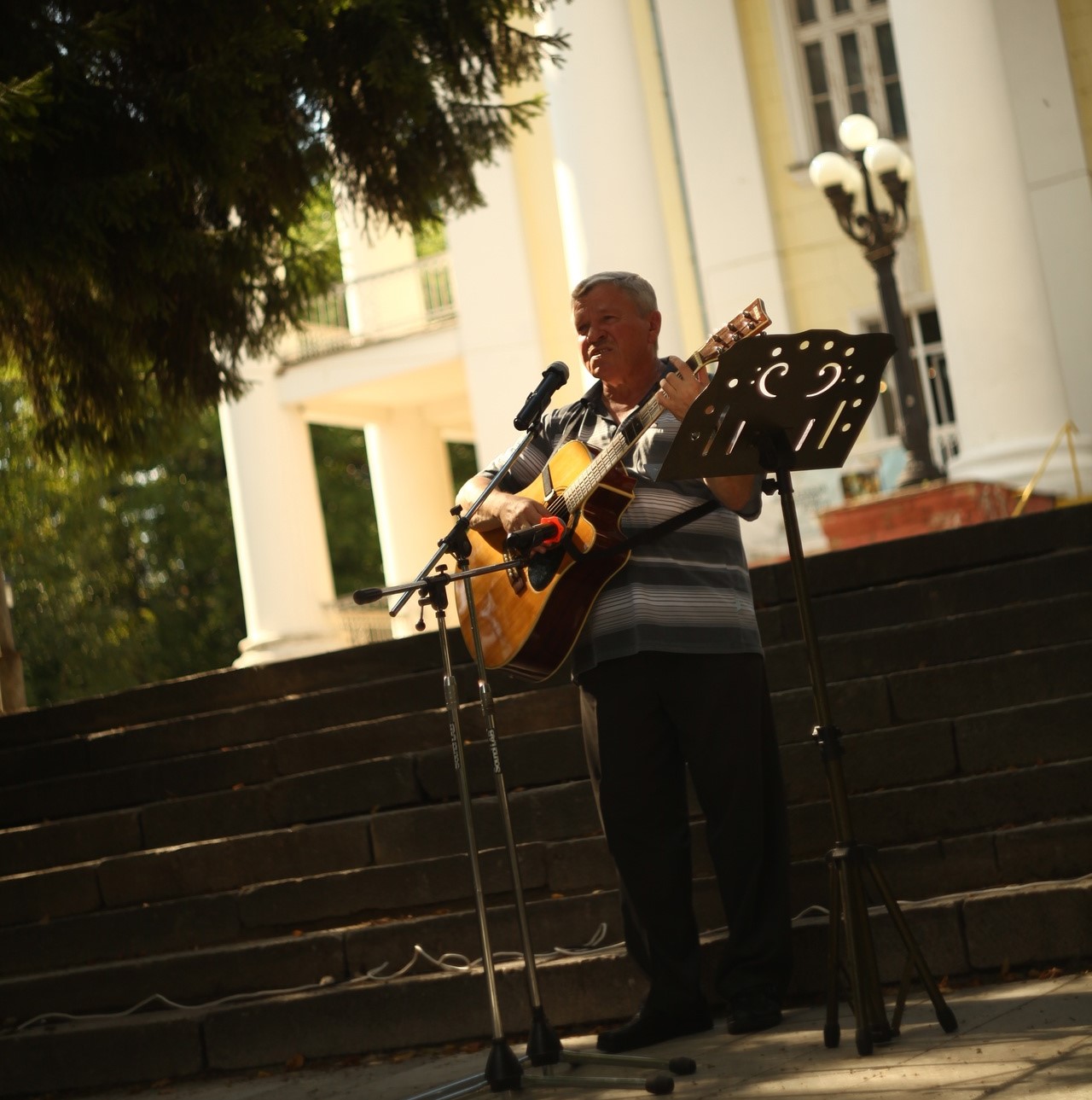 В его исполнении под аккомпанемент гитары прозвучали известные и любимые песни времен Великой Отечественной войны, песни на слова орловских поэтов и песни об Орле, композиции на стихи Владимира Высоцкого и собственные сочинения.