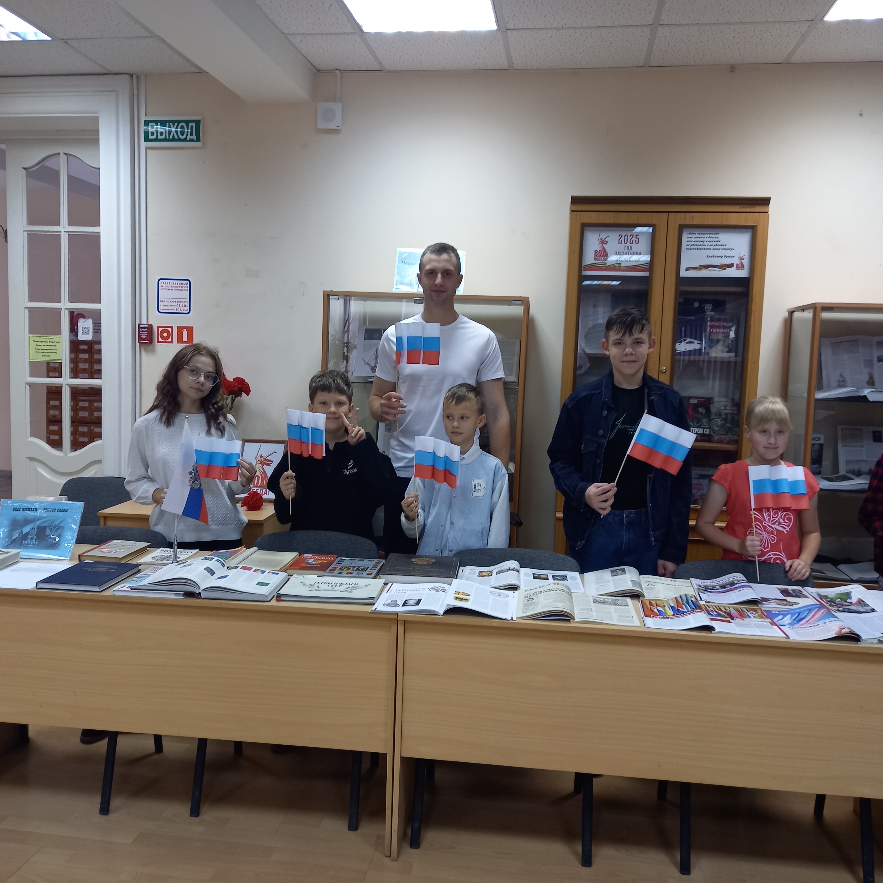 21 августа 2025 года в зале периодики библиотеки состоялся обзор выставки «Флаг державы – символ славы», посвященной Дню Государственного флага Российской Федерации.
