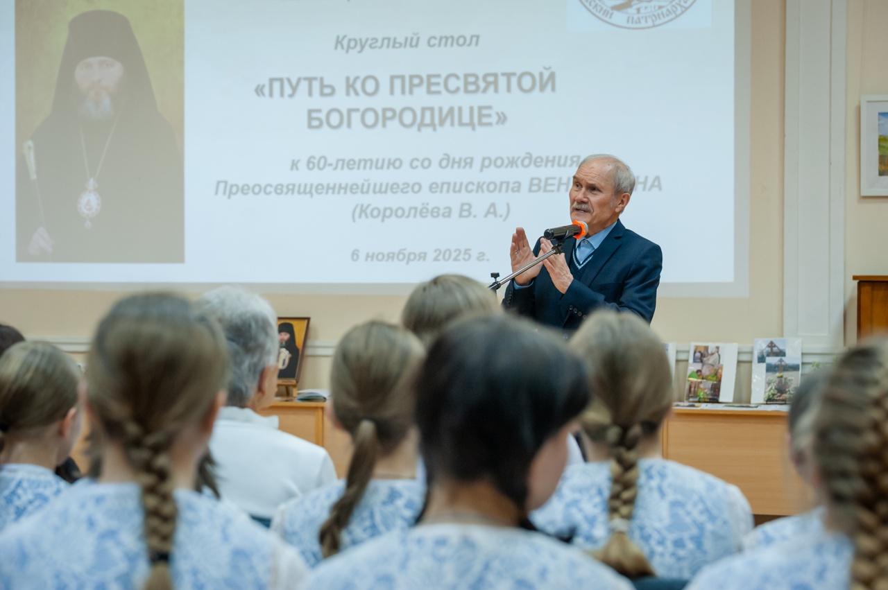 6 ноября 2025 года в библиотеке состоялся круглый стол «Путь ко Пресвятой Богородице», посвящённый 60-летию со дня рождения Владыки Вениамина (Королёва В. А.). Мероприятие прошло в рамках Декады памяти епископа Вениамина (Королёва В. А.) по благословению Высокопреосвященнейшего Тихона, митрополита Орловского и Болховского.
