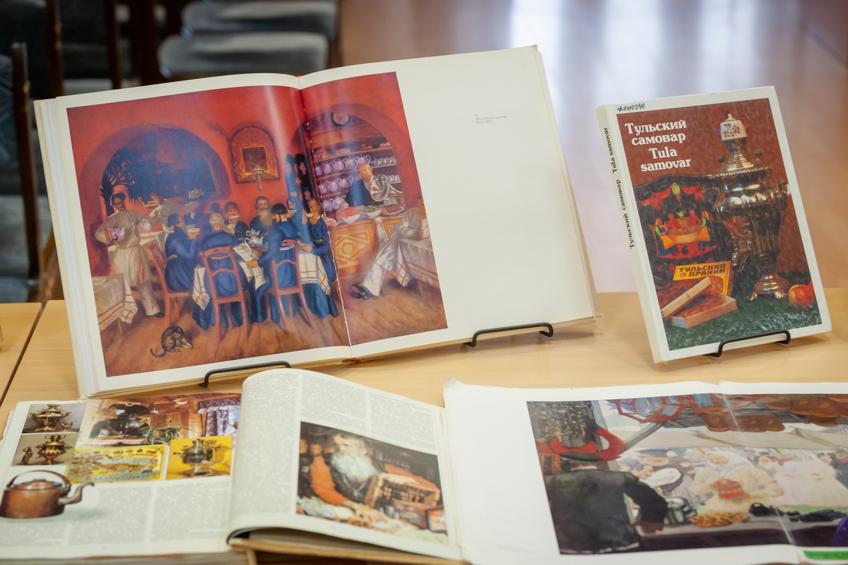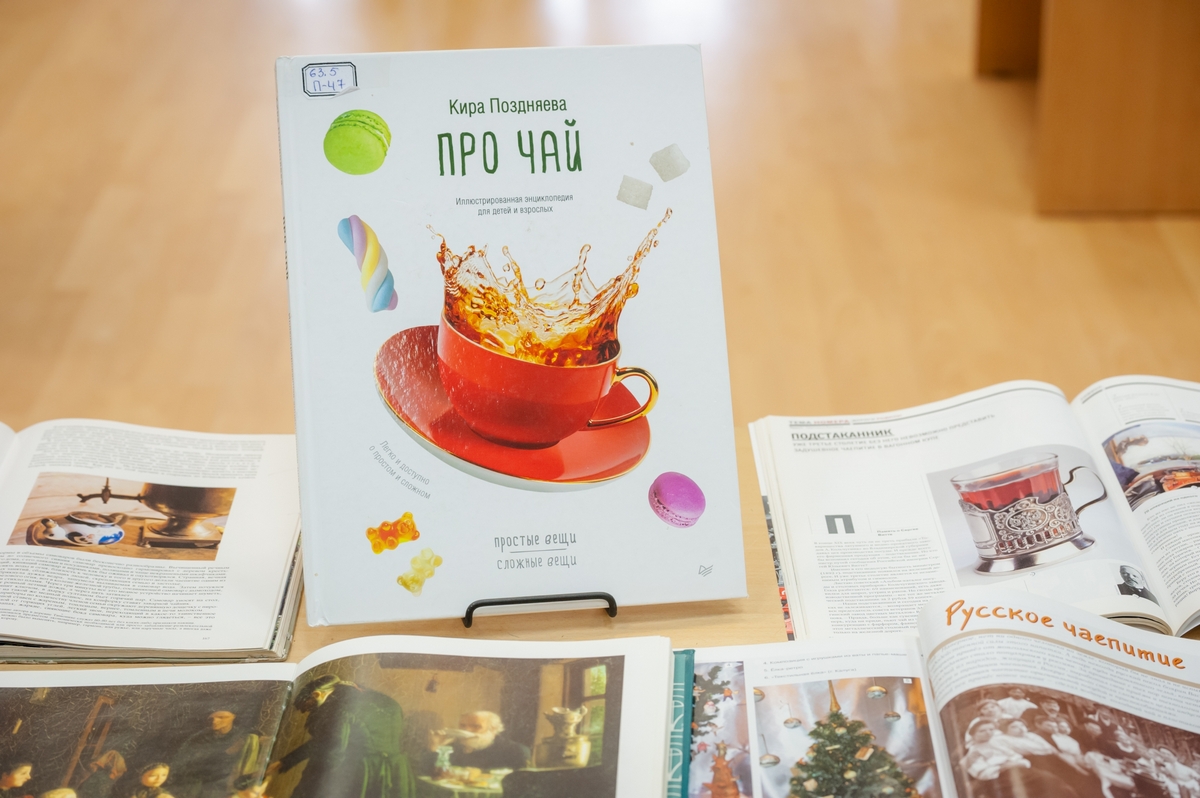 Также на выставке была представлена литература о традиционных атрибутах чаепития: самоварах, сбитенниках, чайниках, подстаканниках, сервизах и их символике. Каждый предмет рассказал свою историю, погружая посетителей в мир русского чаепития.