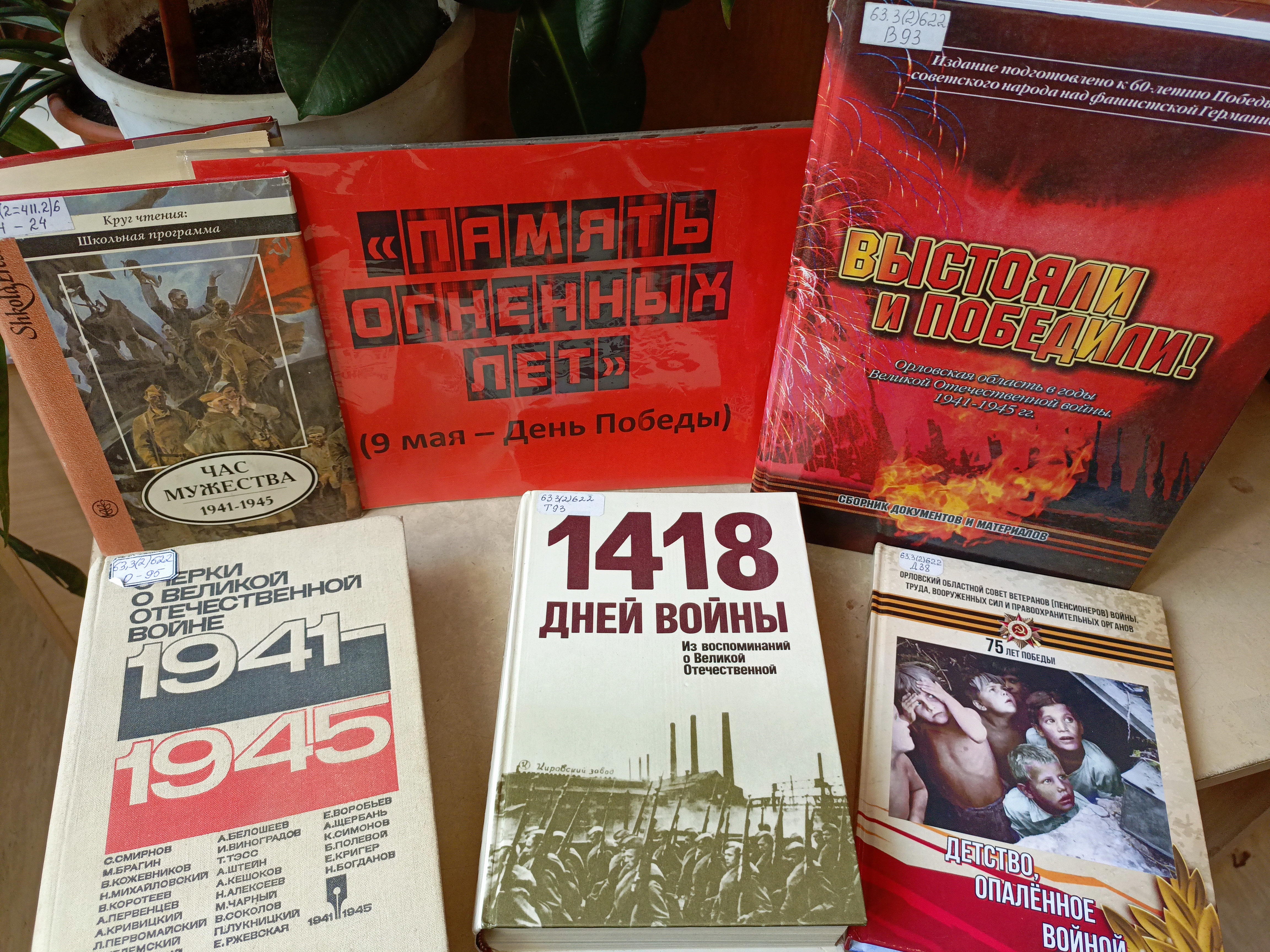 С 8 по 16 мая 2024 года в отделе абонемента образовательных услуг Орловской областной библиотеки им. И. А. Бунина работает выставка «Память огненных лет», посвящённая Дню Победы.