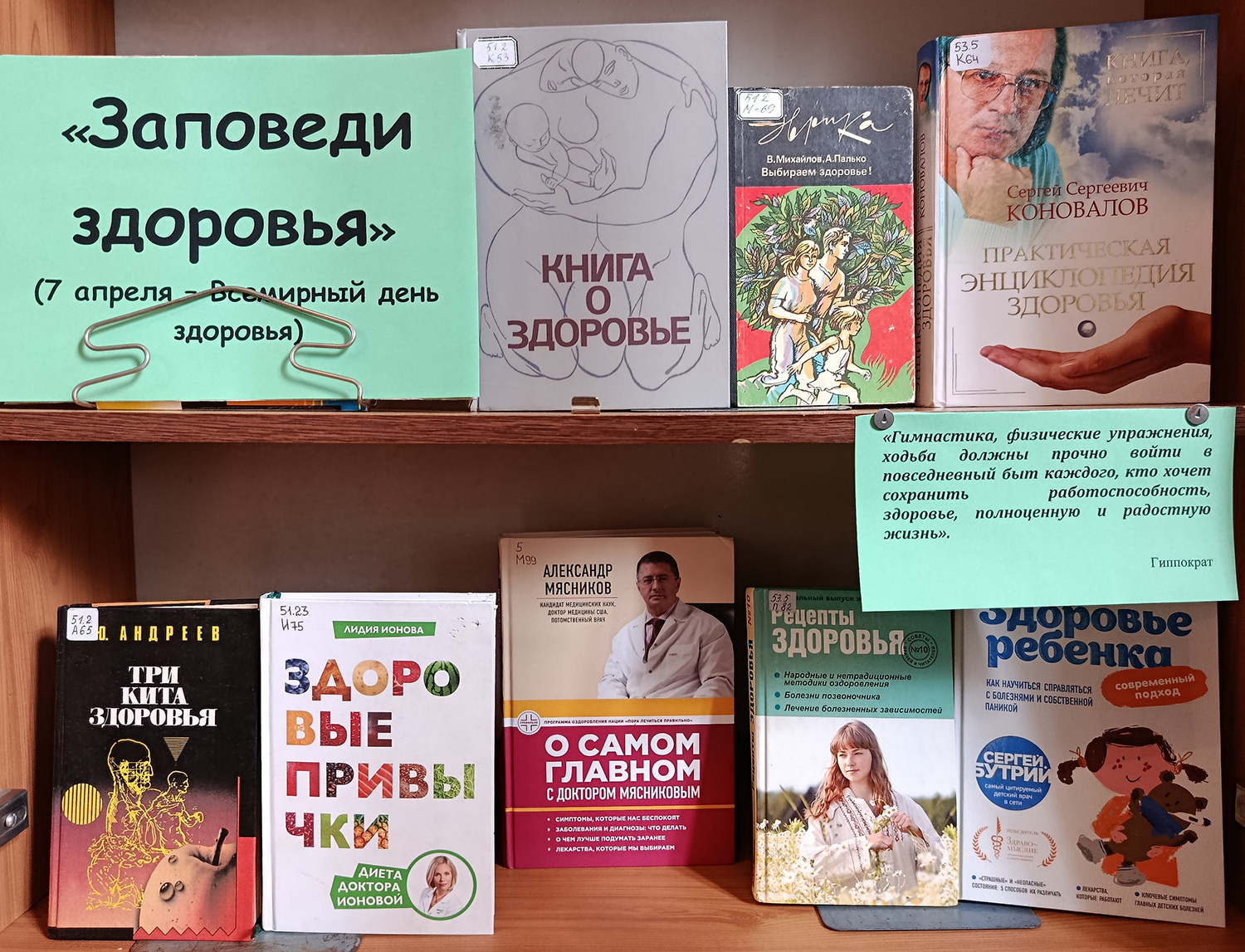 На выставке представлены как уже известные и полюбившиеся читателям книги (Ю. Андреев «Три кита здоровья», В. Михайлов «Выбираем здоровье», Г. Малахов «Здоровье ума и сознания»), так и новинки о науке оздоровления и омоложения организма (В. Передерин «Здоровое питание лечит», А. Мясников «О самом главном с доктором Мясниковым», Н. Богданова «Группы крови: индивидуальная программа жизни», С. Коновалов «Практическая энциклопедия здоровья».