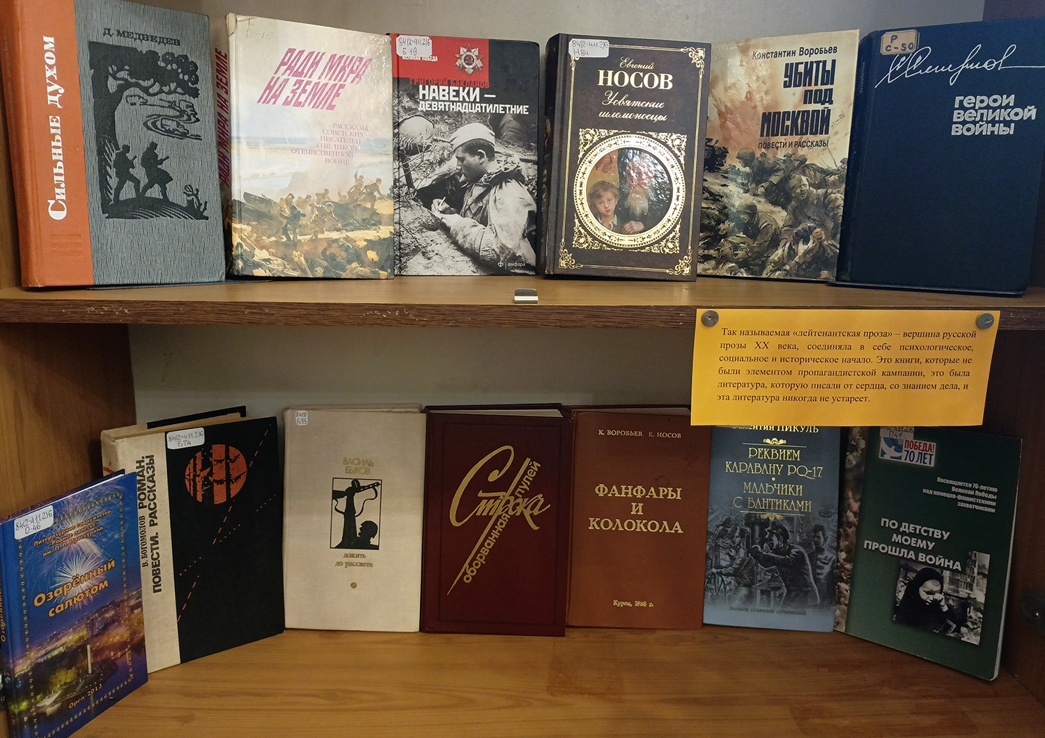 На выставке представлены художественные произведения русских и советских авторов, посвященных событиям Великой Отечественной войны. Особенно искренними выглядят те произведения, которые написаны авторами-фронтовиками. Многие советские писатели принимали непосредственное участие в боевых действиях на передовой, в партизанских отрядах, были военными корреспондентами. Они отразили в своих произведениях страшную реальность войны, трагические судьбы людей и проявленные ими мужество и героизм. Именно благодаря таким книгам мы хотя бы отдаленно способны соприкоснуться с событиями тех лет.